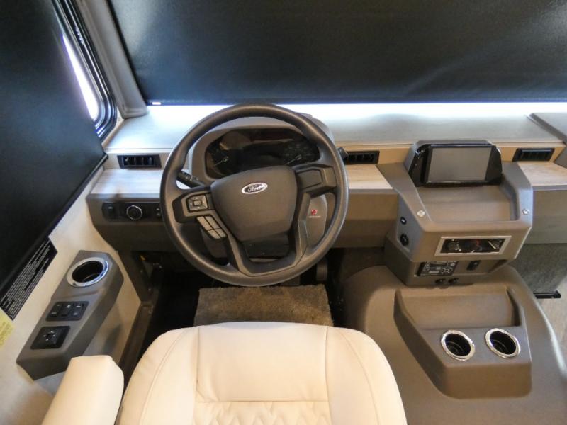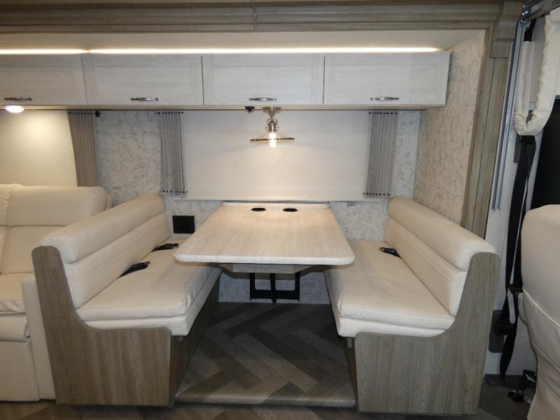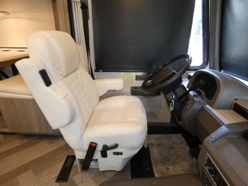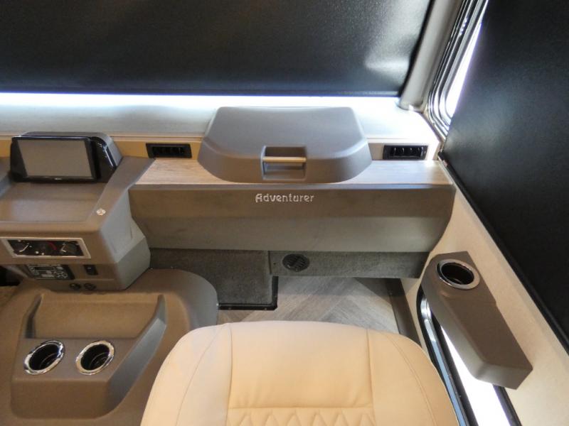 The family-friendly Adventurer Class A gas motorhome by Winnebago is the ultimate family getaway for your trips near and far. The swivel captain's seats include fixed lumbar support and multi-adjustable slide/recline for a truly comfortable ride. You will appreciate the Sony 9" TS radio with Bluetooth, a rearview and sideview monitor system with a color touch screen, SiriusXM ready, and more to make the drive easier than ever. There is also a Driver Confidence Package with added safety features for an overall better driving experience. The powered blackout roller visor/shade on the front windshield will provide privacy when you stop for lunch, and the dash workstation will come in handy when you've got a deadline. Each model includes residential vinyl flooring throughout, a soft vinyl ceiling, a Corian galley countertop, and ceramic tile backsplash. The under-bed storage will provide a place for your luggage, and you'll find lighted storage compartments outside for all your larger gear.