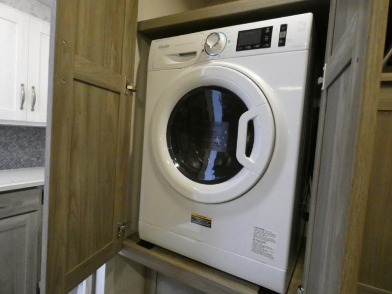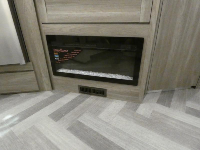 Traveling with your family or larger group will be so easy in this spacious Adventurer Class A gas motorhome. The full and half bath are sure to come in handy, and you'll find plenty of seating space for everyone with the extendable sectional sofa. Once the chef has prepared lunch on the gas/induction range top, the kids can enjoy it at the dinette with a Hi-Lo table, and the adults can take their plate outside to sit under the 16' power awning. Whether you're watching a movie on the 39" HDTV or just enjoying the glow of the electric fireplace, you will truly enjoy your time spent in this coach. The master bedroom includes a king bed slide, dual wardrobes and nightstands, and a space with a washer and dryer.