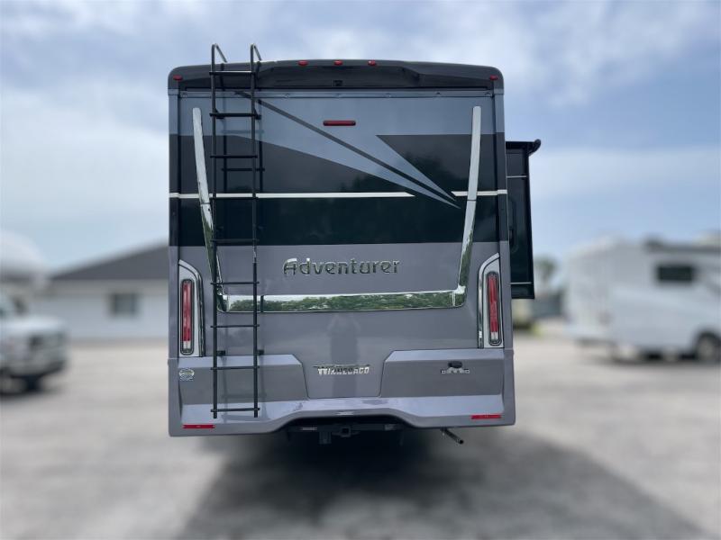 The family-friendly Adventurer Class A gas motorhome by Winnebago is the ultimate family getaway for your trips near and far. The swivel captain's seats include fixed lumbar support and multi-adjustable slide/recline for a truly comfortable ride. You will appreciate the Sony 9" TS radio with Bluetooth, a rearview and sideview monitor system with a color touch screen, SiriusXM ready, and more to make the drive easier than ever. There is also a Driver Confidence Package with added safety features for an overall better driving experience. The powered blackout roller visor/shade on the front windshield will provide privacy when you stop for lunch, and the dash workstation will come in handy when you've got a deadline. Each model includes residential vinyl flooring throughout, a soft vinyl ceiling, a Corian galley countertop, and ceramic tile backsplash. The under-bed storage will provide a place for your luggage, and you'll find lighted storage compartments outside for all your larger gear. The optional SumoSprings suspension system and steering stabilizing system can be added to make the drive even smoother, and the optional WinnSleep Premium Serene mattress is another option you may want to add for all-around comfort!