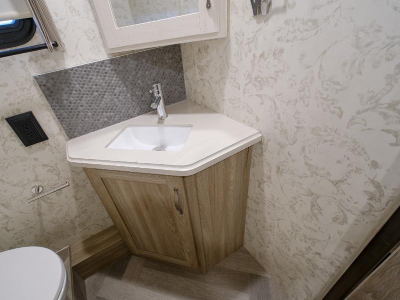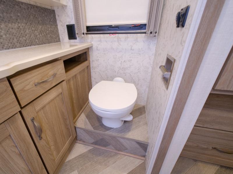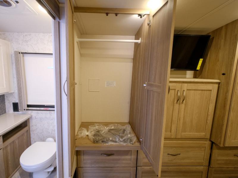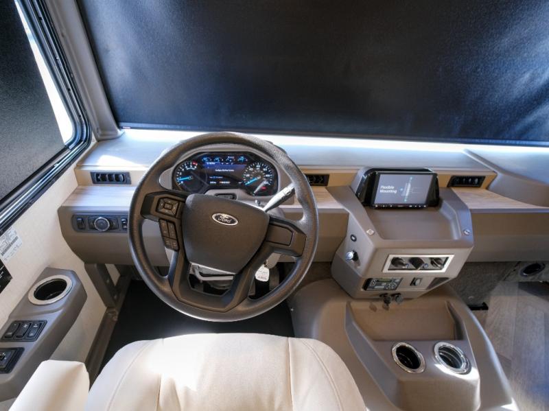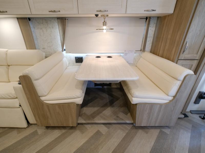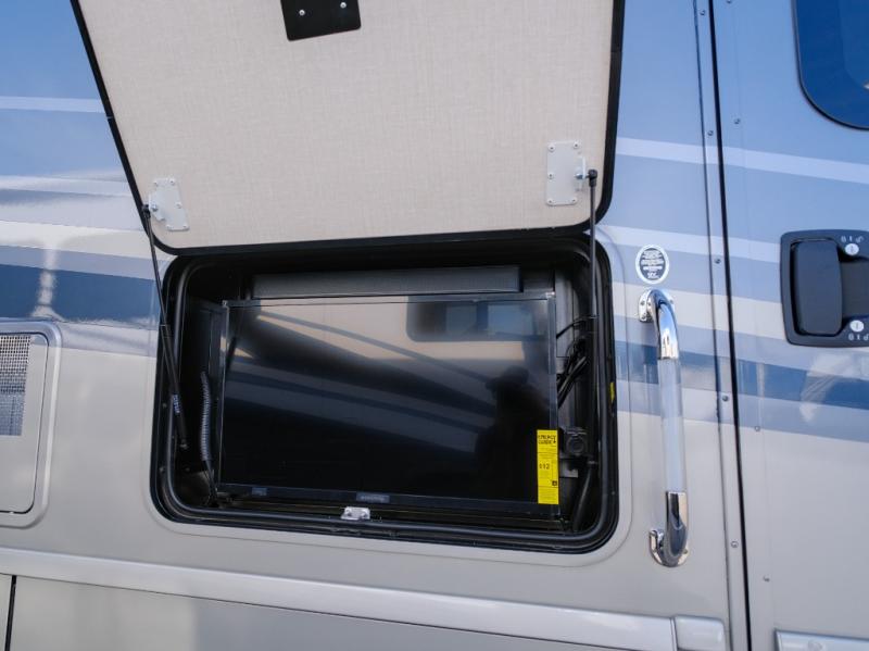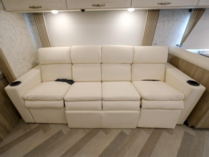 The family-friendly Adventurer Class A gas motorhome by Winnebago is the ultimate family getaway for your trips near and far. The swivel captain's seats include fixed lumbar support and multi-adjustable slide/recline for a truly comfortable ride. You will appreciate the Sony 9" TS radio with Bluetooth, a rearview and sideview monitor system with a color touch screen, SiriusXM ready, and more to make the drive easier than ever. There is also a Driver Confidence Package with added safety features for an overall better driving experience. The powered blackout roller visor/shade on the front windshield will provide privacy when you stop for lunch, and the dash workstation will come in handy when you've got a deadline. Each model includes residential vinyl flooring throughout, a soft vinyl ceiling, a Corian galley countertop, and ceramic tile backsplash. The under-bed storage will provide a place for your luggage, and you'll find lighted storage compartments outside for all your larger gear.