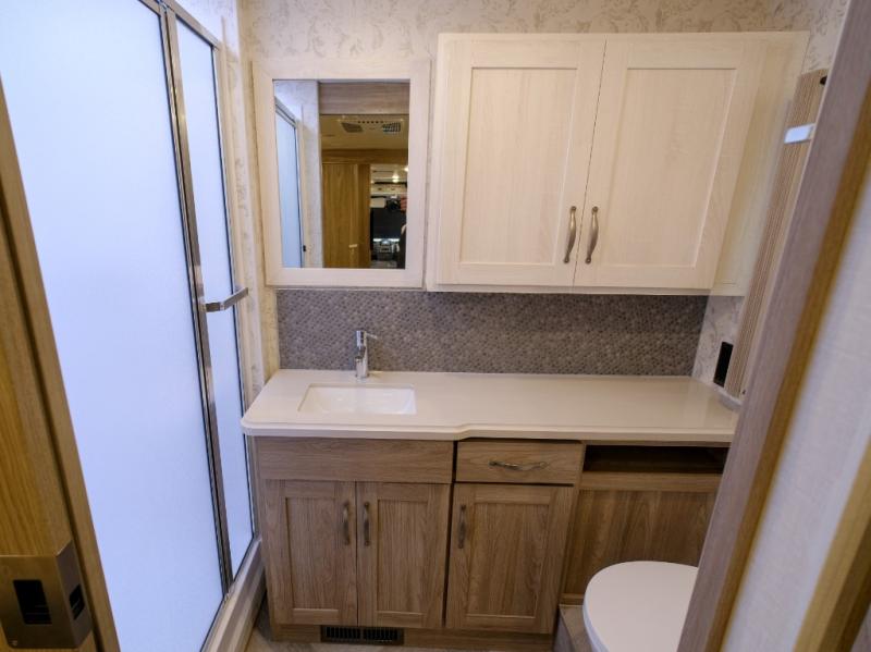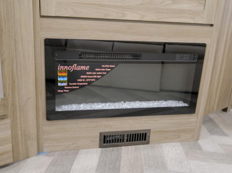 Traveling with your family or larger group will be so easy in this spacious Adventurer Class A gas motorhome. The full and half bath are sure to come in handy, and you'll find plenty of seating space for everyone with the extendable sectional sofa. Once the chef has prepared lunch on the gas/induction range top, the kids can enjoy it at the dinette with a Hi-Lo table, and the adults can take their plate outside to sit under the 16' power awning. Whether you're watching a movie on the 39" HDTV or just enjoying the glow of the electric fireplace, you will truly enjoy your time spent in this coach. The master bedroom includes a king bed slide, dual wardrobes and nightstands, and a space to add a washer and dryer if you choose.
