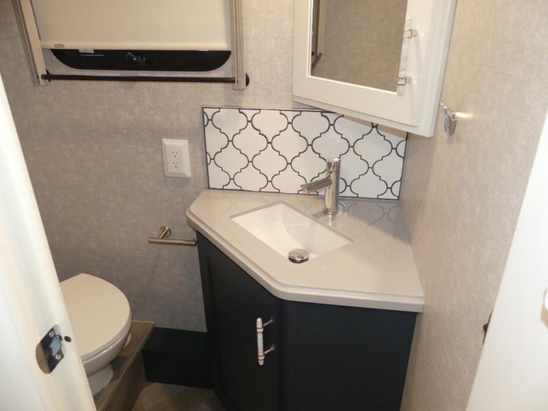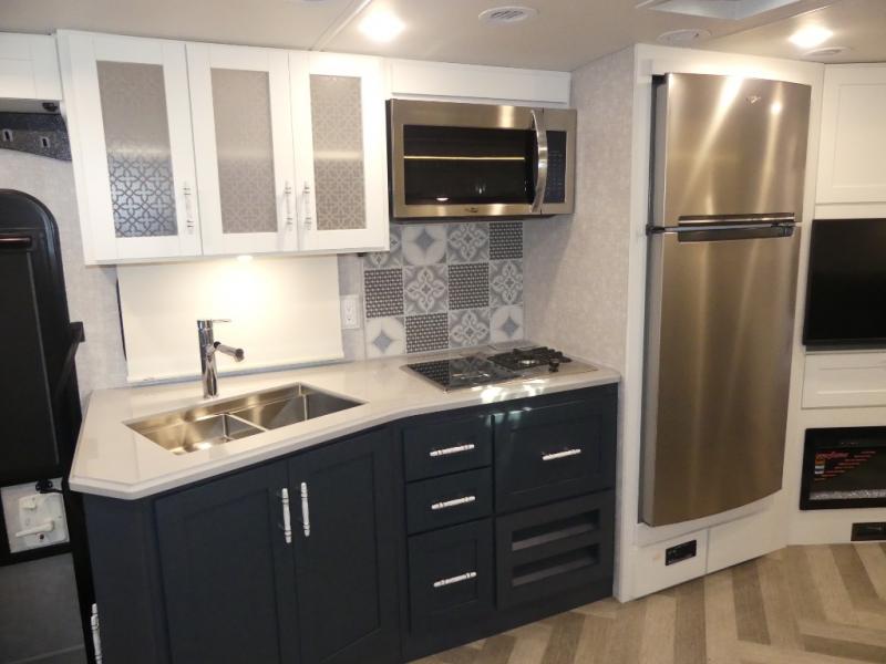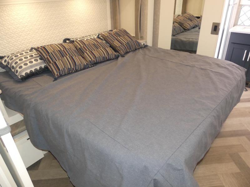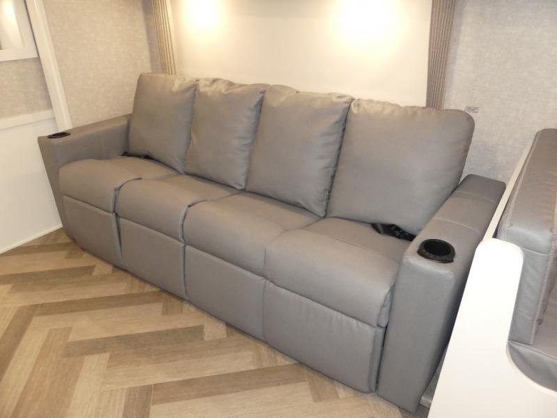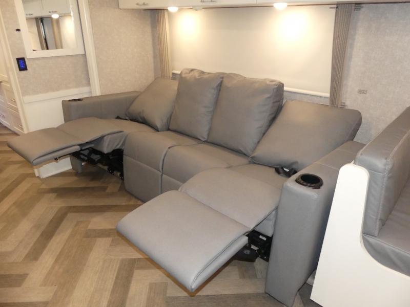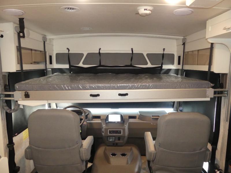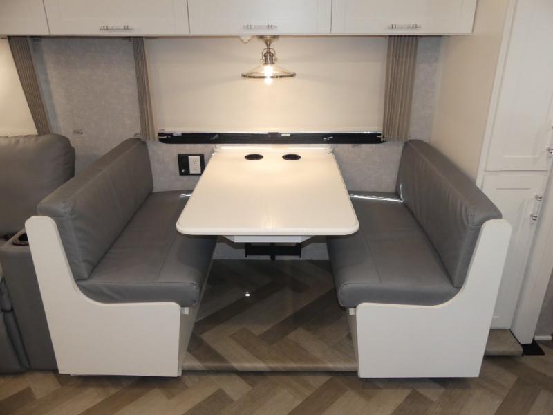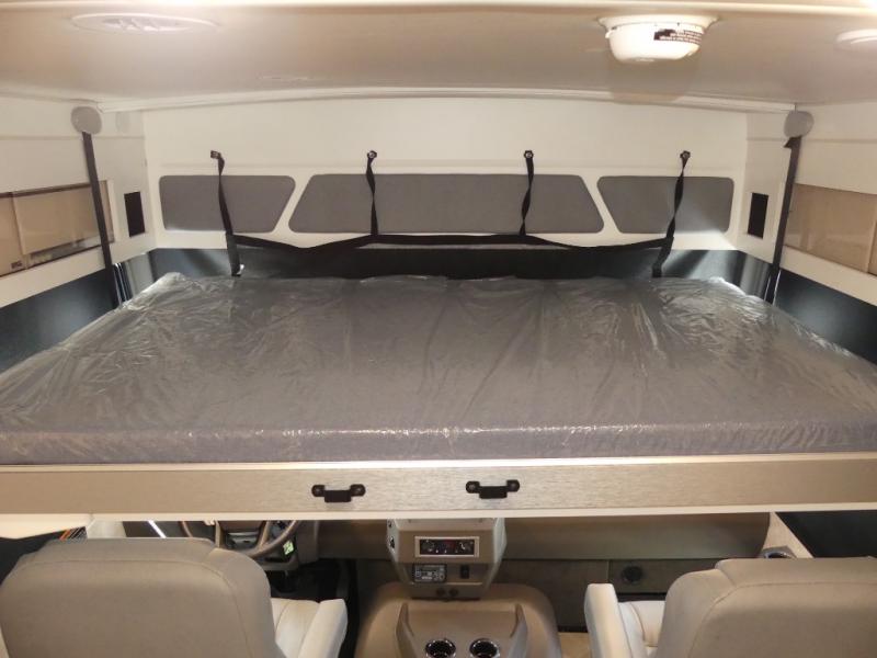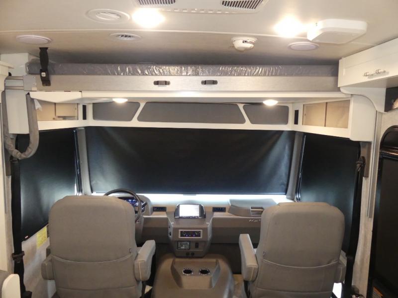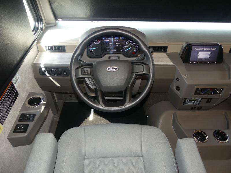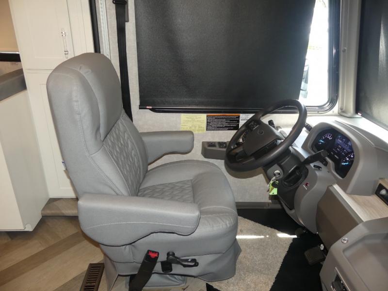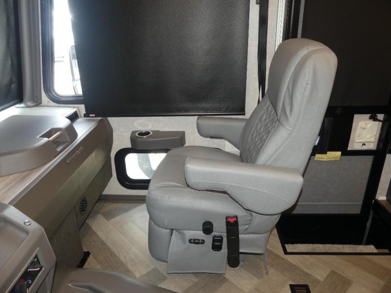 The family-friendly Adventurer Class A gas motorhome by Winnebago is the ultimate family getaway for your trips near and far. The swivel captain's seats include fixed lumbar support and multi-adjustable slide/recline for a truly comfortable ride. You will appreciate the Sony 9" TS radio with Bluetooth, a rearview and sideview monitor system with a color touch screen, SiriusXM ready, and more to make the drive easier than ever. There is also a Driver Confidence Package with added safety features for an overall better driving experience. The powered blackout roller visor/shade on the front windshield will provide privacy when you stop for lunch, and the dash workstation will come in handy when you've got a deadline. Each model includes residential vinyl flooring throughout, a soft vinyl ceiling, a Corian galley countertop, and ceramic tile backsplash. The under-bed storage will provide a place for your luggage, and you'll find lighted storage compartments outside for all your larger gear.