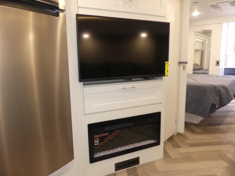 Traveling with your family or larger group will be so easy in this spacious Adventurer Class A gas motorhome. The full and half bath are sure to come in handy, and you'll find plenty of seating space for everyone with the theater sofa. Once the chef has prepared lunch on the gas/induction range top, the kids can enjoy it at the dinette with a Hi-Lo table, and the adults can take their plate outside to sit under the 16' power awning. Whether you're watching a movie on the 39" HDTV or just enjoying the glow of the electric fireplace, you will truly enjoy your time spent in this coach. The master bedroom includes a king bed slide, dual wardrobes and nightstands, and a space to add a washer and dryer if you choose.