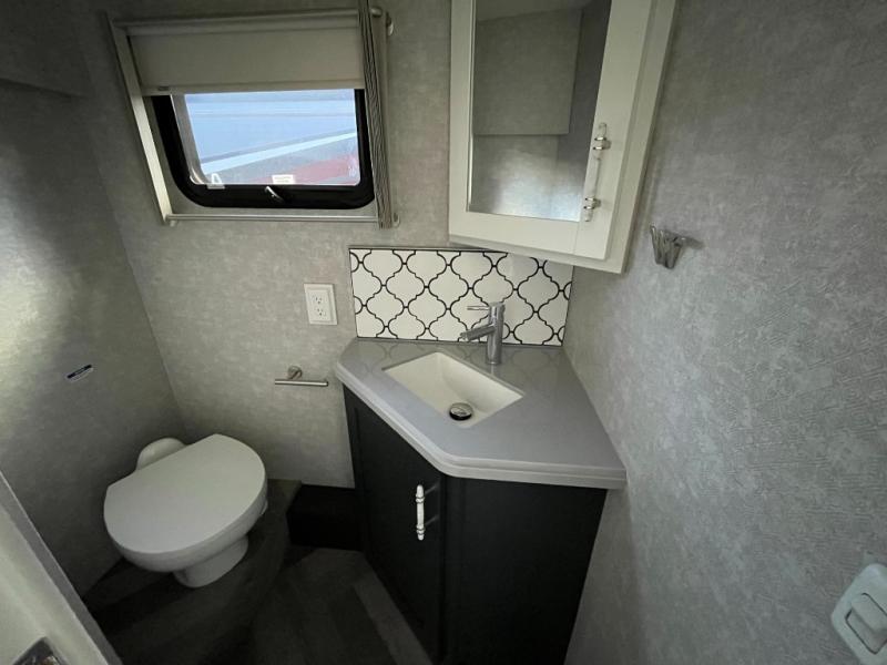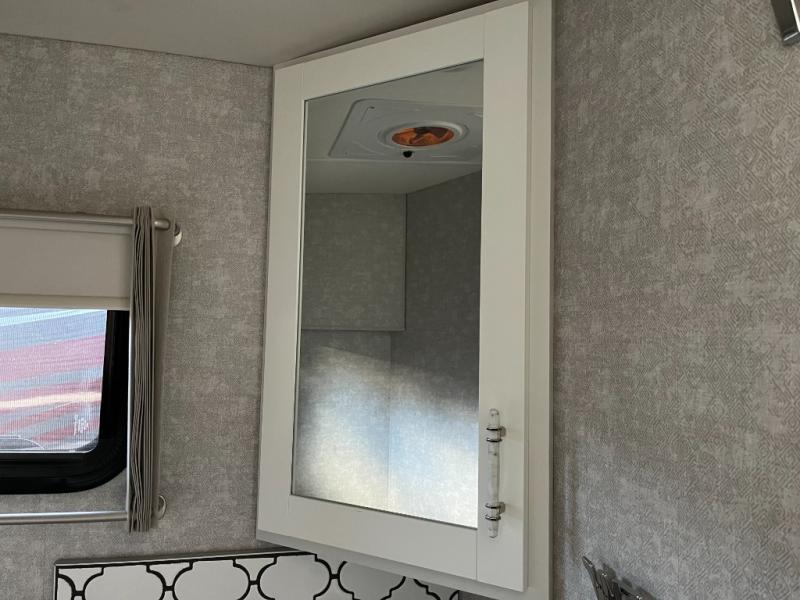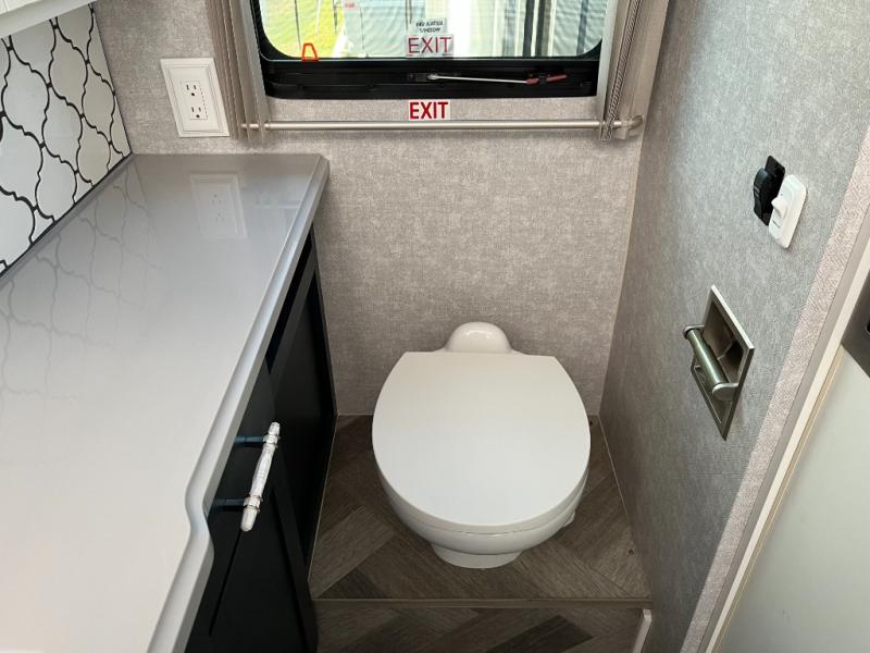 After a day of travel fun, retreat to the private bedroom equipped with a comfortable bed and abundant storage. The bedroom offers peaceful rest and rejuvenation, so you’re always ready for the next leg of your adventure. Thoughtfully placed lighting and cabinetry add convenience and comfort that make this space truly welcoming.