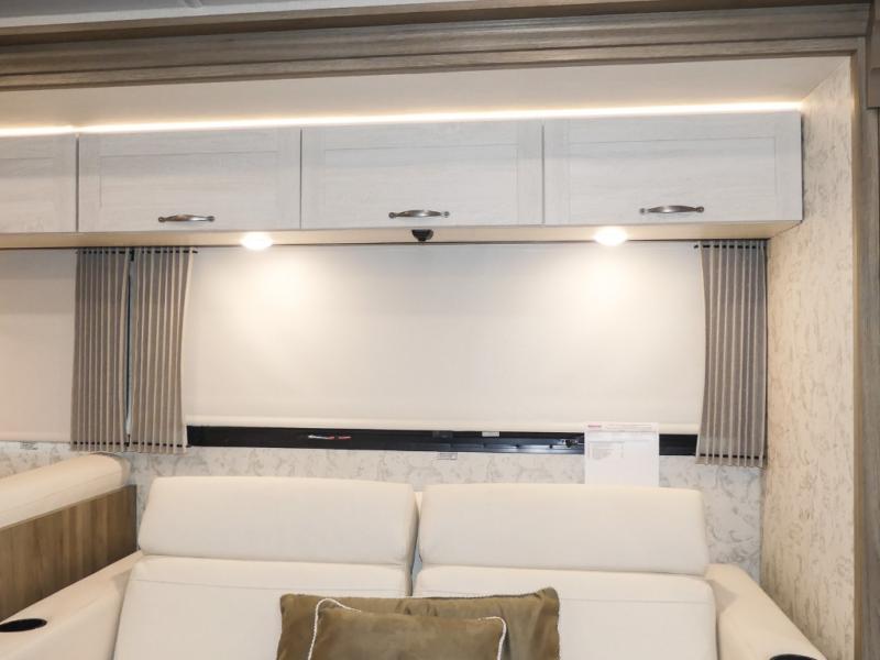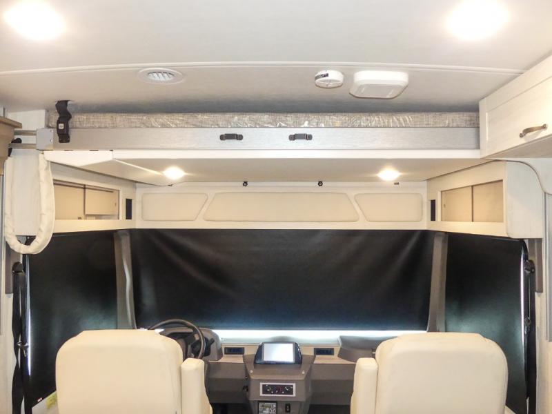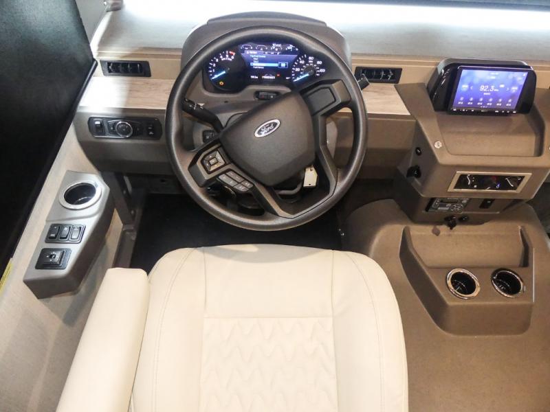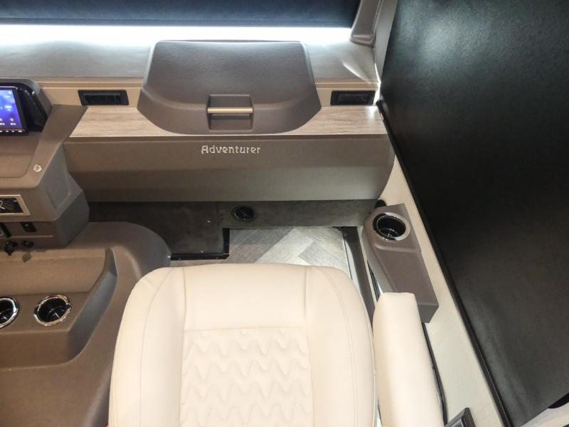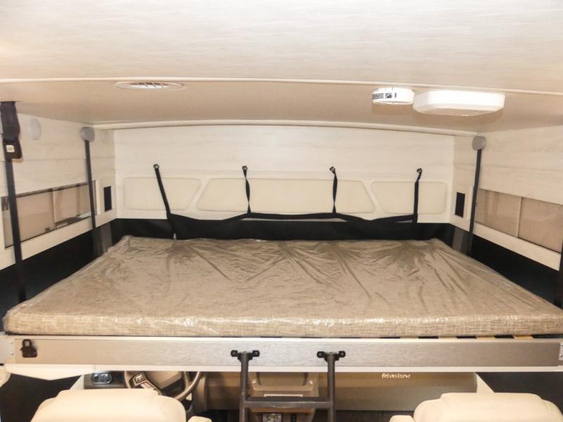 The family-friendly Adventurer Class A gas motorhome by Winnebago is the ultimate family getaway for your trips near and far. The swivel captain's seats include fixed lumbar support and multi-adjustable slide/recline for a truly comfortable ride. You will appreciate the Sony 9" TS radio with Bluetooth, a rearview and sideview monitor system with a color touch screen, SiriusXM ready, and more to make the drive easier than ever. There is also a Driver Confidence Package with added safety features for an overall better driving experience. The powered blackout roller visor/shade on the front windshield will provide privacy when you stop for lunch, and the dash workstation will come in handy when you've got a deadline. Each model includes residential vinyl flooring throughout, a soft vinyl ceiling, a Corian galley countertop, and ceramic tile backsplash. The under-bed storage will provide a place for your luggage, and you'll find lighted storage compartments outside for all your larger gear.
