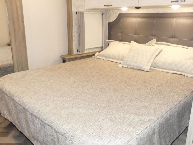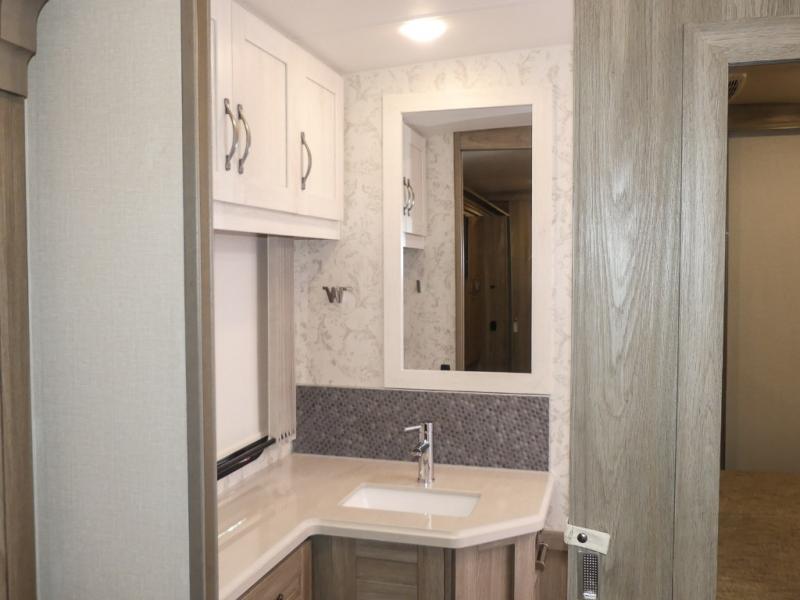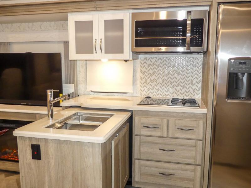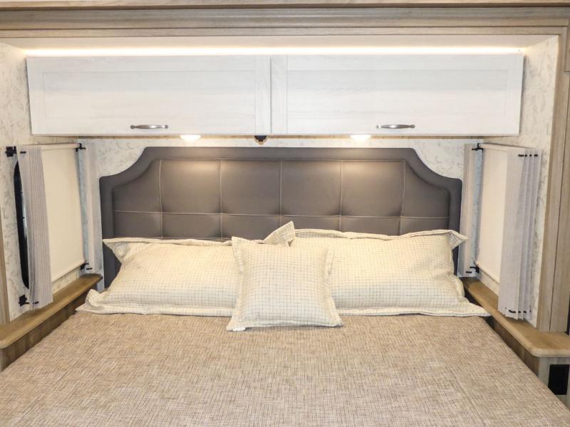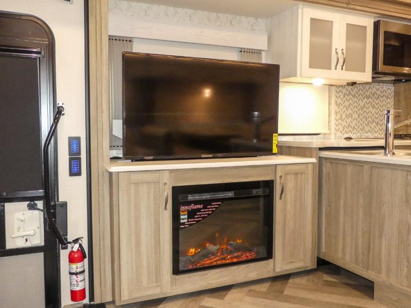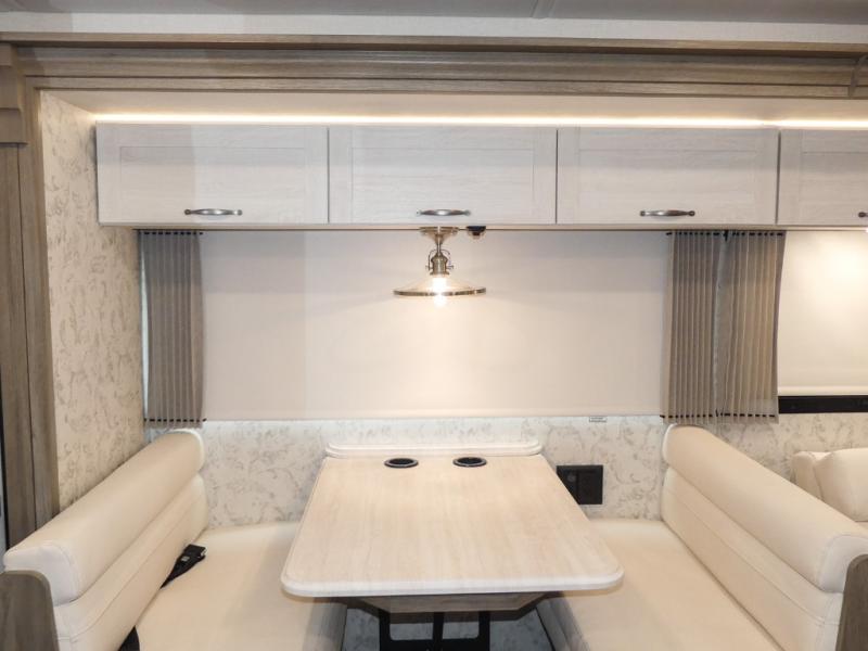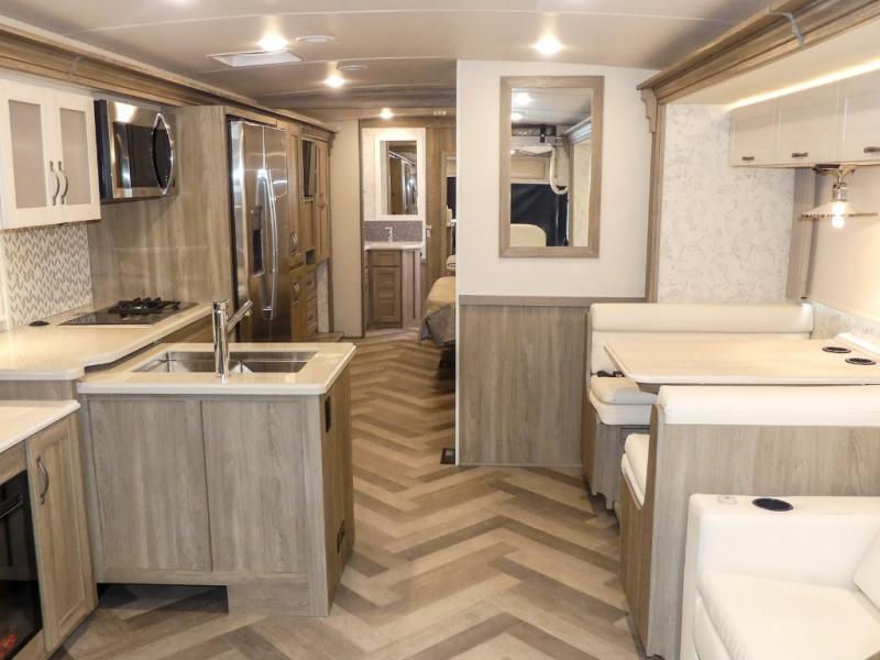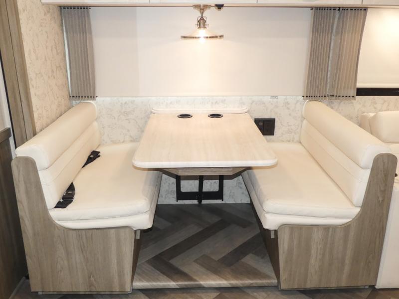 This Adventurer Class A gas motorhome is the perfect home on wheels for your next big adventure. The full-wall slide along with two additional slides provide an open and inviting space to stretch out. While the chef of the family is preparing dinner on the gas/induction range top, the kids or your guests can play a game at the dinette or watch a show on the retractable TV. Comfortable seating space will be found on the TrueComfort+ Sofa or the BenchMark Dinette, and these areas will convert into the kids' sleeping space at night! This model includes plenty of storage space, including a large bedroom wardrobe plus a pantry. Nothing says convenience like a full and half bath, and you'll get just that with this model.