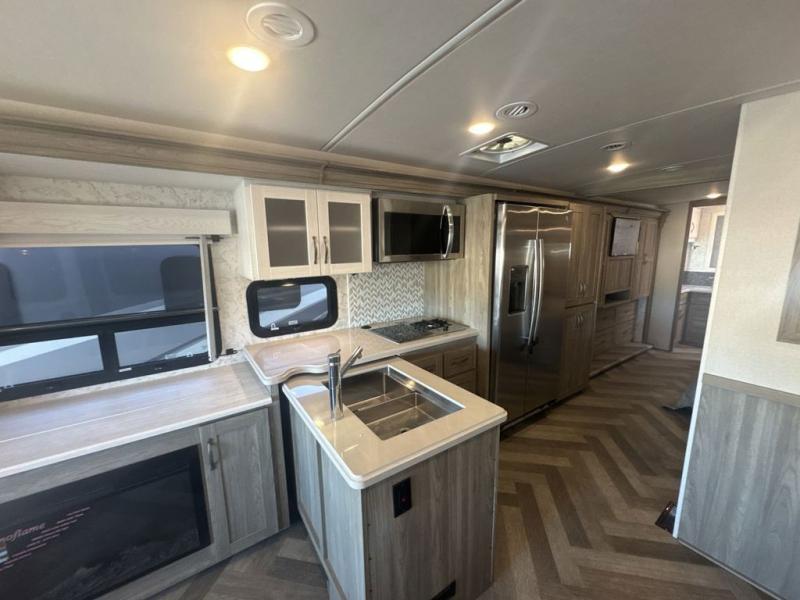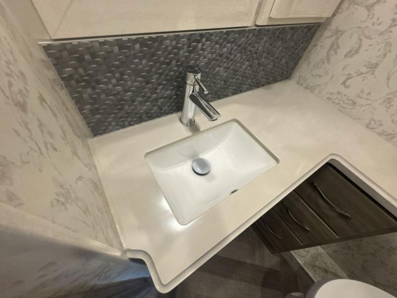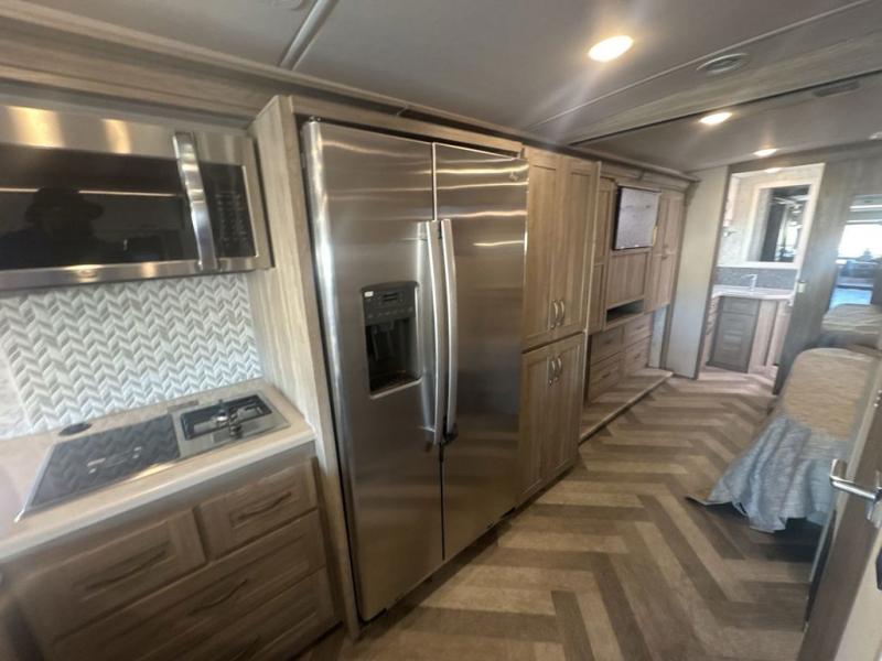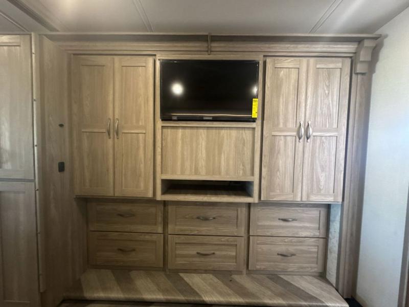 This Adventurer Class A gas motorhome is the perfect home on wheels for your next big adventure. The full-wall slide along with two additional slides provide an open and inviting space to stretch out. While the chef of the family is preparing dinner on the gas/induction range top, the kids or your guests can play a game at the dinette or watch a show on the retractable TV. Comfortable seating space will be found on the TrueComfort+ Sofa or the BenchMark Dinette, and these areas will convert into the kids' sleeping space at night! This model includes plenty of storage space, including a large bedroom wardrobe plus a pantry that can also be used to add an optional washer and dryer if you choose. Nothing says convenience like a full and half bath, and you'll get just that with this model. Plus, you can add the optional StudioLoft bed for additional sleeping space.