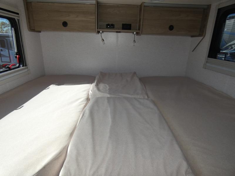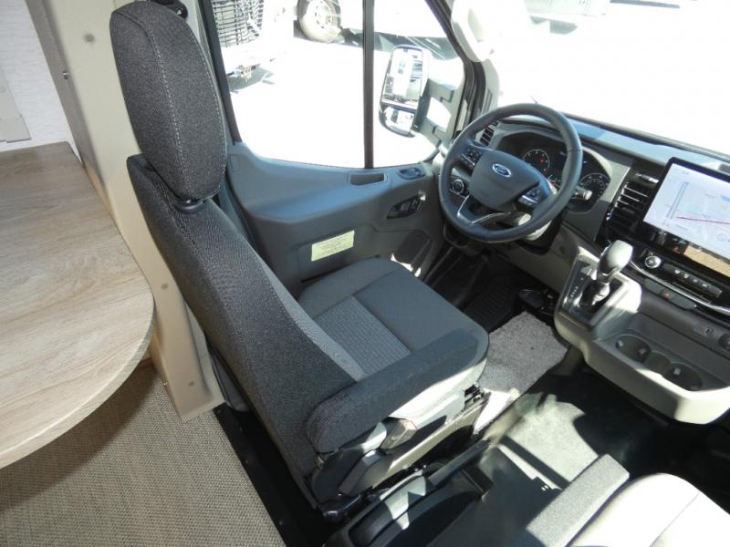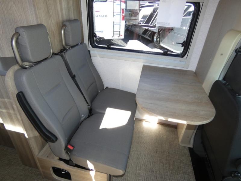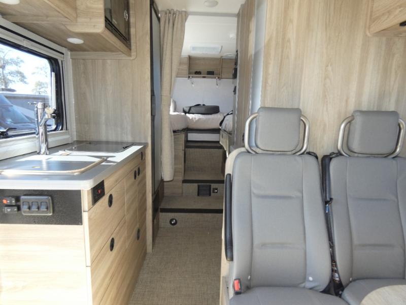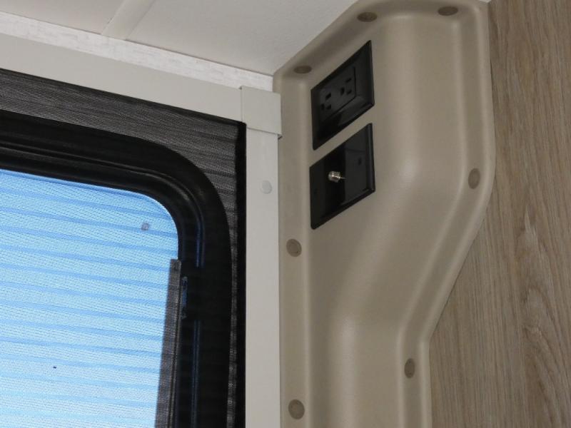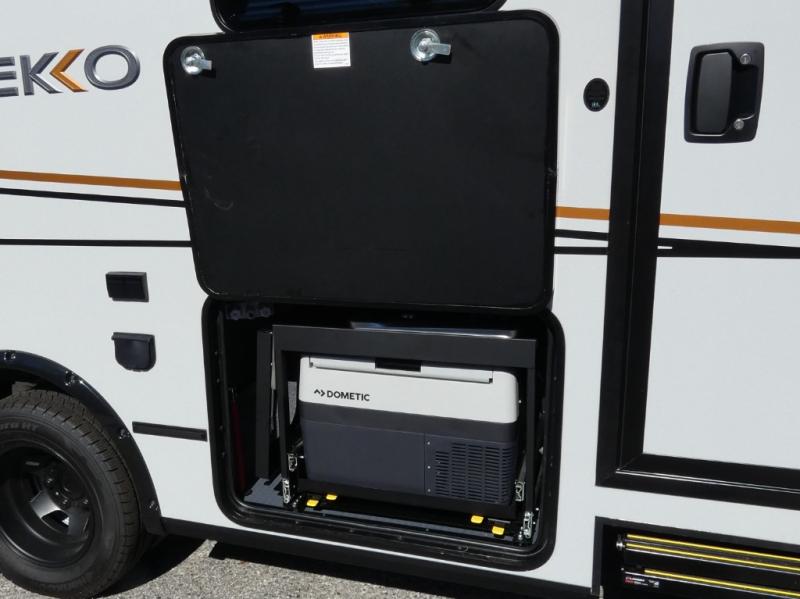This Ekko all-wheel drive Class C gas motorhome is just unbelievably functional! Not only do you have plenty of storage space for all of your gear with the gear garage, under-bed storage, pantry, and 5.3-cubic foot refrigerator, but you also have a 24" x 30" wet bath with a pivoting lavatory wall so you can stay clean without having to stop at rest areas along the way. The cab area is excellently appointed with a radio/rearview monitor system, swivel/recline cab seats, and many driving safety features. Since the cab seats can swivel, you can use them as another place to sit down and eat at the fold-down table, and you can also use the swivel/adjustable work table for the passenger cab seat or as an extended countertop in the kitchen.