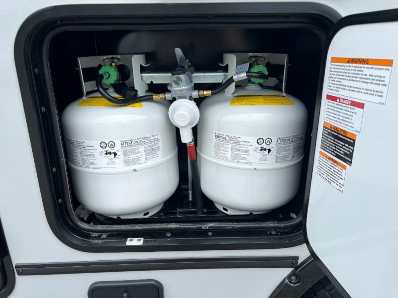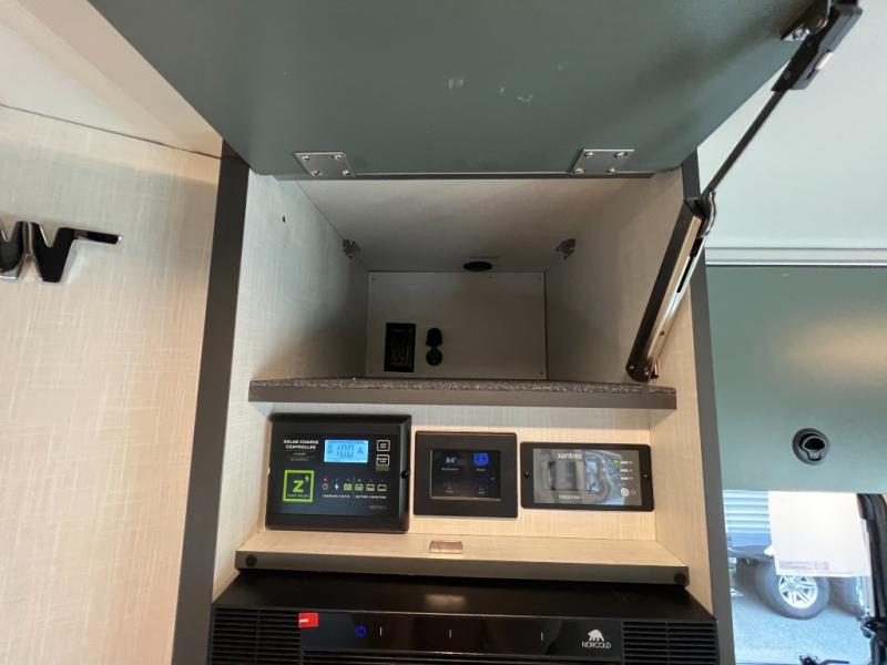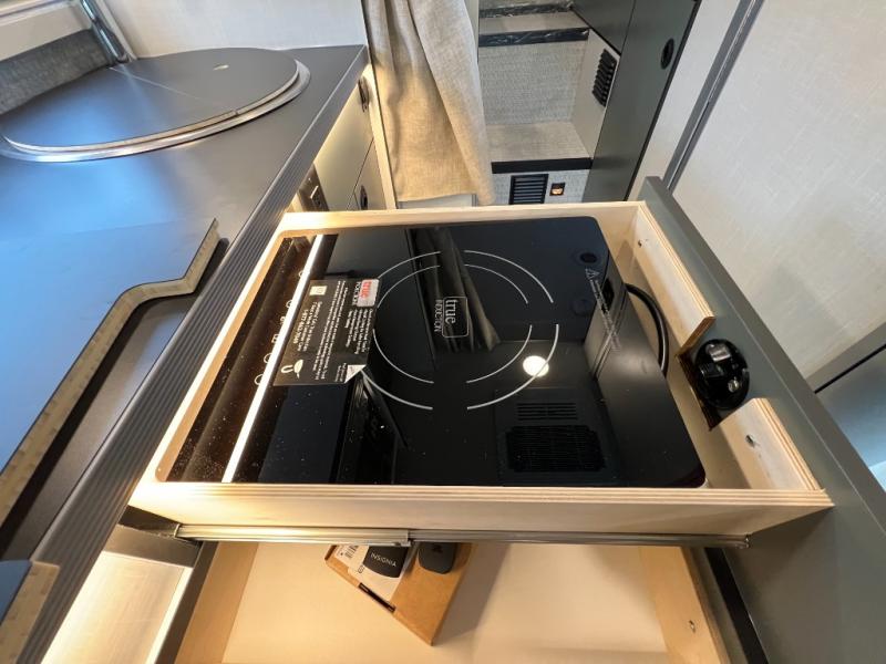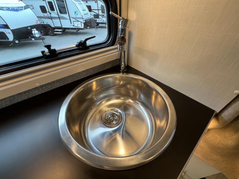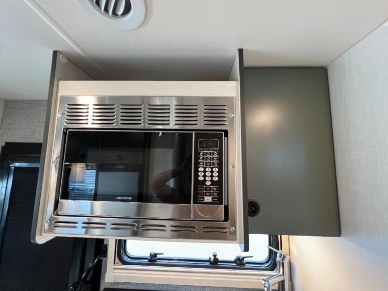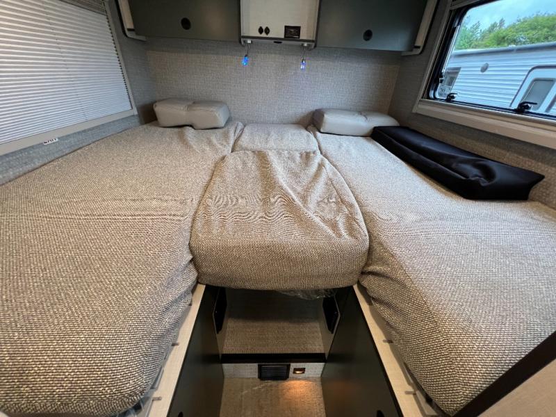 Fully-Equipped Kitchen: Whether you’re whipping up a gourmet meal or keeping things simple, the Ekko 23B kitchen has everything you need: a two-burner cooktop, microwave, and spacious refrigerator. Plus, enjoy your meals indoors or outdoors under the power awning.