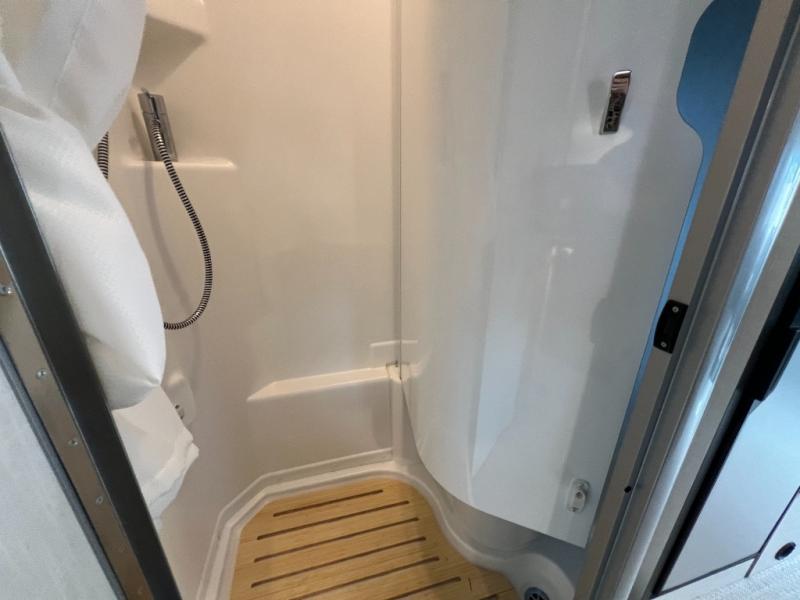 Innovative Bathroom: No matter where your journey takes you, stay fresh with a modern bathroom complete with a roomy shower, sleek sink and vanity, and a stylish toilet, offering you both comfort and convenience on the go.