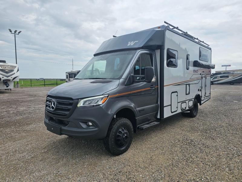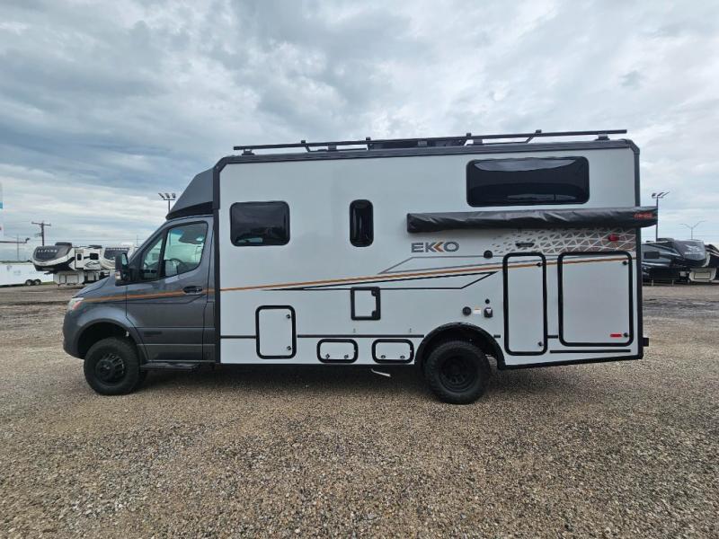 If you're ready to start your RV adventure then you need to check out this Winnebago EKKO Sprinter Class C diesel motorhome! Experience a versatile base camp with belted seating for four, sleeping for three or more with the added optional pop-top, deep gear garage, and flexible living space. It has enhanced off-road capabilities by being built on the Mercedes-Benz AWD Sprinter chassis that has elevated ground clearance and all-terrain tires for low-traction environments. Your driving comfort and safety are also enhanced with a MBUX multimedia system with navigation, Apple CarPlay and Android Auto, a digital rearview mirror, active lane keeping assist, DISTRONIC PLUS adaptive cruise control, attention assist, and much more. Come see what else it has to offer!