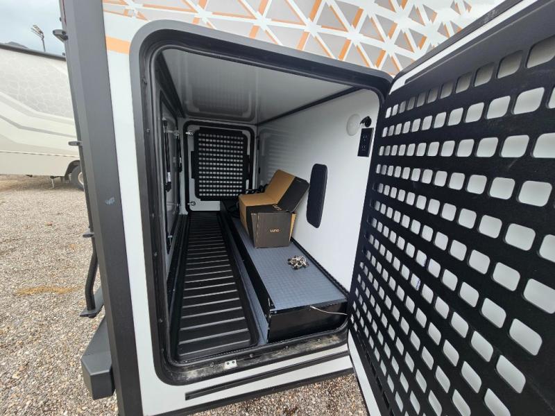 You will love the versatility found throughout this motorhome! Starting with the rear multifunctional lounge that can convert into four different modes. The flexible wet-dry bath has a pivoting lavatory wall, a 24" x 30" shower, an Oxygenics shower head to wash up, and even robe hooks to hang your towel afterwards. Keep your bellies full with delicious home cooked meals prepared in the versatile galley with the portable single burner induction range top, convection microwave oven, and 5.3 cu. ft. single door 12V refrigerator, plus a galley drawer/counter extension base. The heated gear garage has a L-track cargo tie down system with removable floor liner, 110V/12V charging ports and LED lighting to see clearly day or night!