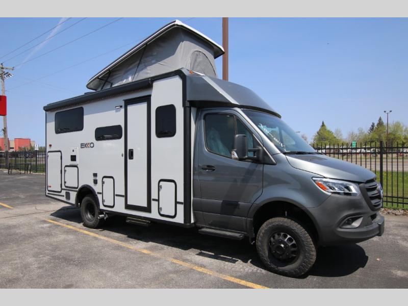 If you're ready to start your RV adventure then you need to check out this Winnebago EKKO Sprinter Class C diesel motorhome! Experience a versatile base camp with belted seating for four, sleeping for three or more with the added optional pop-top, deep gear garage, and flexible living space. It has enhanced off-road capabilities by being built on the Mercedes-Benz AWD Sprinter chassis that has elevated ground clearance and all-terrain tires for low-traction environments. Your driving comfort and safety are also enhanced with a MBUX multimedia system with navigation, Apple CarPlay and Android Auto, a digital rearview mirror, active lane keeping assist, DISTRONIC PLUS adaptive cruise control, attention assist, and much more. Come see what else it has to offer!