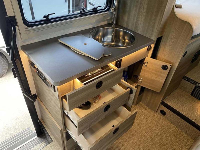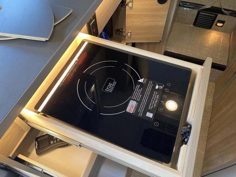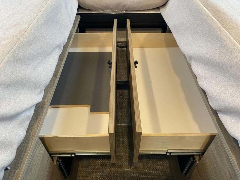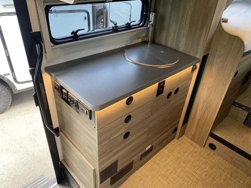 You will love the versatility found throughout this motorhome! Starting with the multifunctional lounge that can convert into four different modes. The flexible wet-dry bath has a pivoting lavatory wall, a 24" x 30" shower, an Oxygenics shower head to wash up, and even robe hooks to hang your towel afterwards. Keep your bellies full with delicious home cooked meals prepared in the versatile galley with the portable single burner induction range top, convection microwave oven, and 5.3 cu. ft. single door 12V refrigerator, plus a galley drawer/counter extension base. The heated gear garage has a L-track cargo tie down system with removable floor liner, 110V/12V charging ports and LED lighting to see clearly day or night!