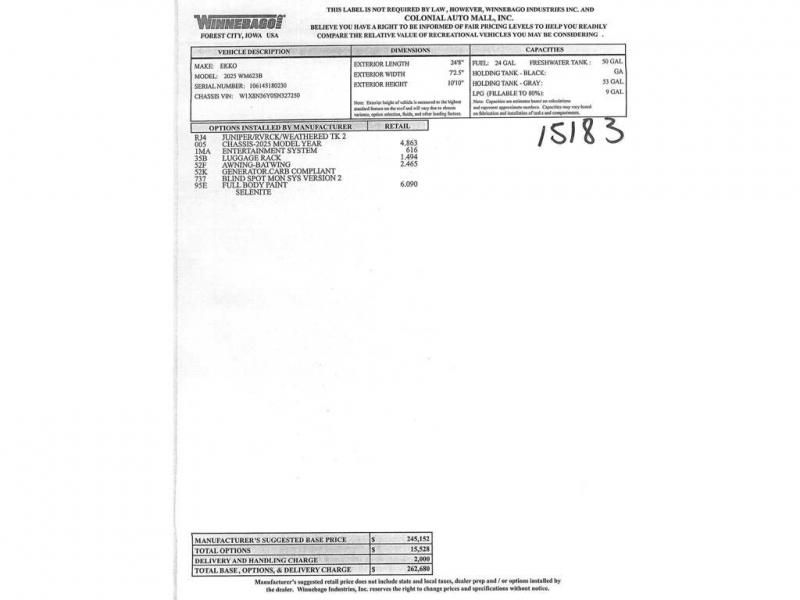 | Awning Info | 13' Power w/ LED Light and Bluetooth |