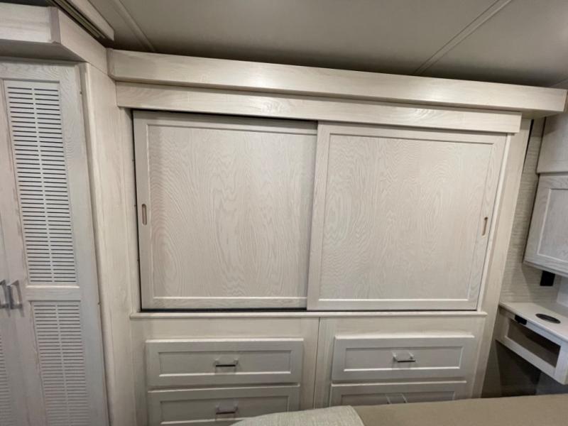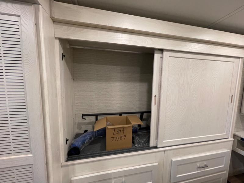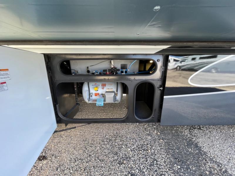 With this Forza Class A diesel motorhome, you won't even need to plan a destination because this coach is the only getaway you need! You could park it in your backyard and still feel as if you've gone away on a retreat. The interior has great accommodations with its BenchMark dinette, theater seating, and swivel/recline cab seats, and the large slide provides extra space for you to spread out and relax. The kitchen is fully equipped with the best tools, and the flip-up countertop extension is going to be helpful for providing extra counter space when it is pulled out into place. You will find another large slide that carries over from the kitchen into the bedroom, and the bedroom even has its very own 32" HDTV so that you can watch your favorite shows while lying down on the king-size bed. You can also choose the optional Studio Loft drop-down bed on this model if you are needing more sleeping space!