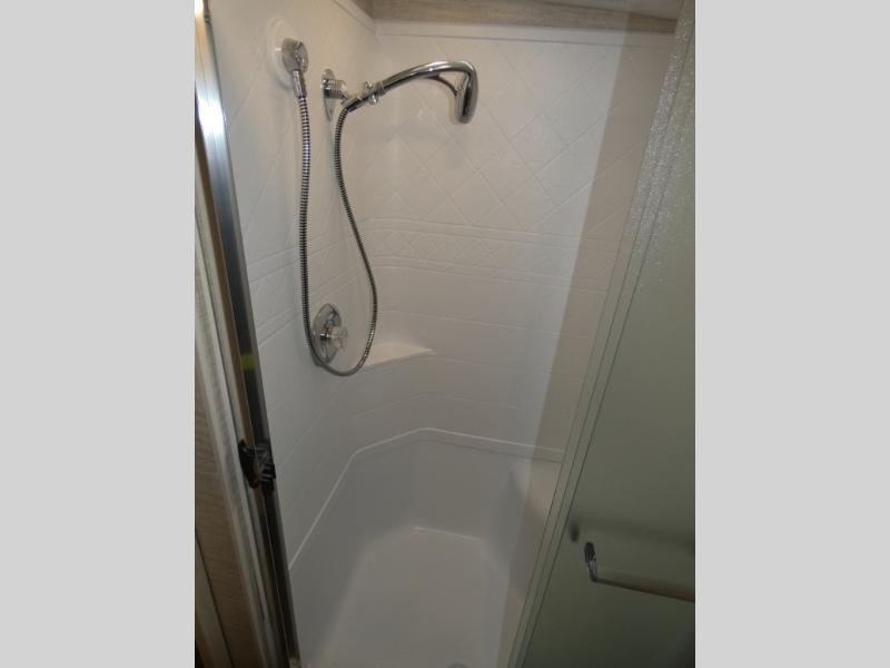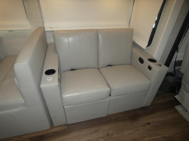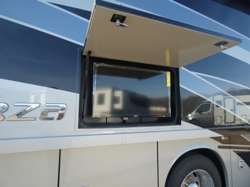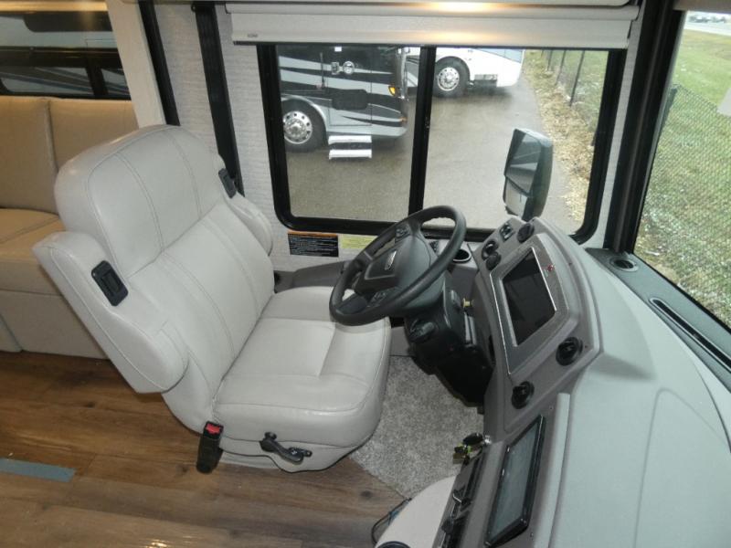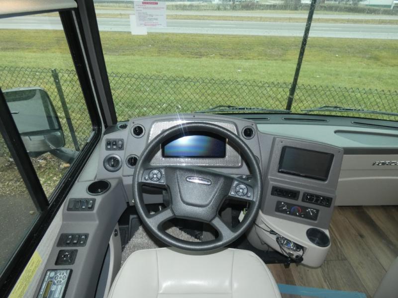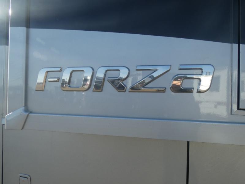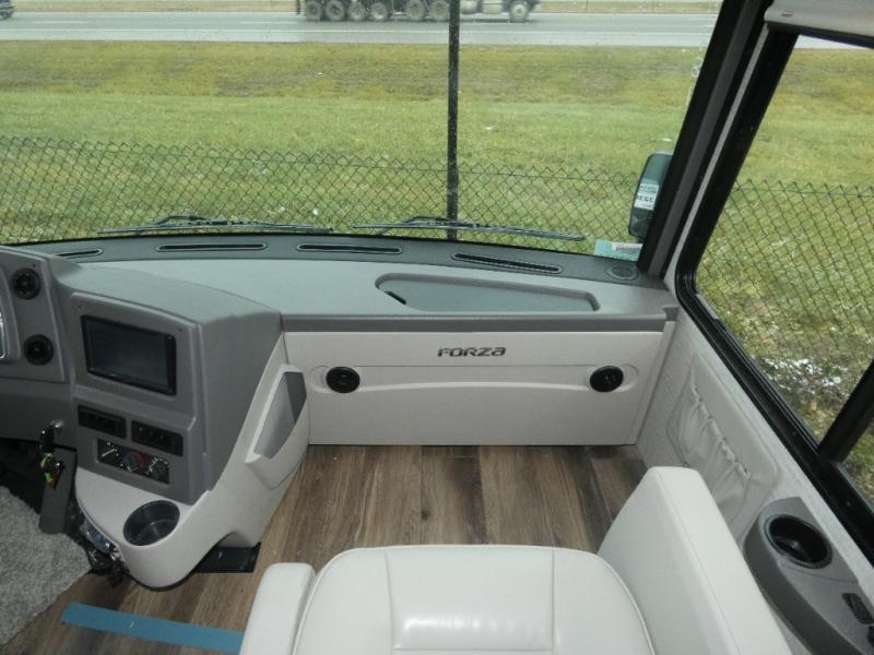 There isn't a thing you won't love about the Winnebago Forza Class A diesel motorhome! These powerful and practical coaches have excellent quality in their construction, and the undercarriage lighting is quite stylish and impressive. You'll find NeWay air suspension with V-Ride, automatic hydraulic leveling jacks, a 10,000-lb. hitch, and automatic entrance steps. Sitting in the cab will be enjoyable with the multi-adjustable swivel and recline seats, the radio/rearview monitor system with 9" LCD color touchscreen, the cellphone interface to radio, and the TRW® tilt/telescopic steering column with foot-actuated pedal. The interior has a Firefly switch panel that lights up when it's dark, and the 6,000W Cummins Onan generator is what you need to power your coach. You will also find vinyl flooring throughout, blackout roller shades, Corian countertops, a textured glass shower door, and many more comforts you'd expect to find at home!