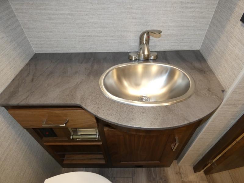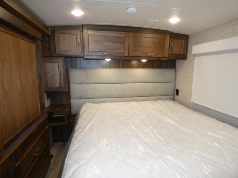 With this Forza Class A diesel motorhome, you won't even need to plan a destination because this coach is the only getaway you need! You could park it in your backyard and still feel as if you've gone away on a retreat. The interior has great accommodations with its BenchMark dinette, theater seating, and swivel/recline cab seats, and the large slide provides extra space for you to spread out and relax. The kitchen is fully equipped with the best tools, and the flip-up countertop extension is going to be helpful for providing extra counter space when it is pulled out into place. You will find another large slide that carries over from the kitchen into the bedroom, and the bedroom even has its very own 32" HDTV so that you can watch your favorite shows while lying down on the king-size bed.