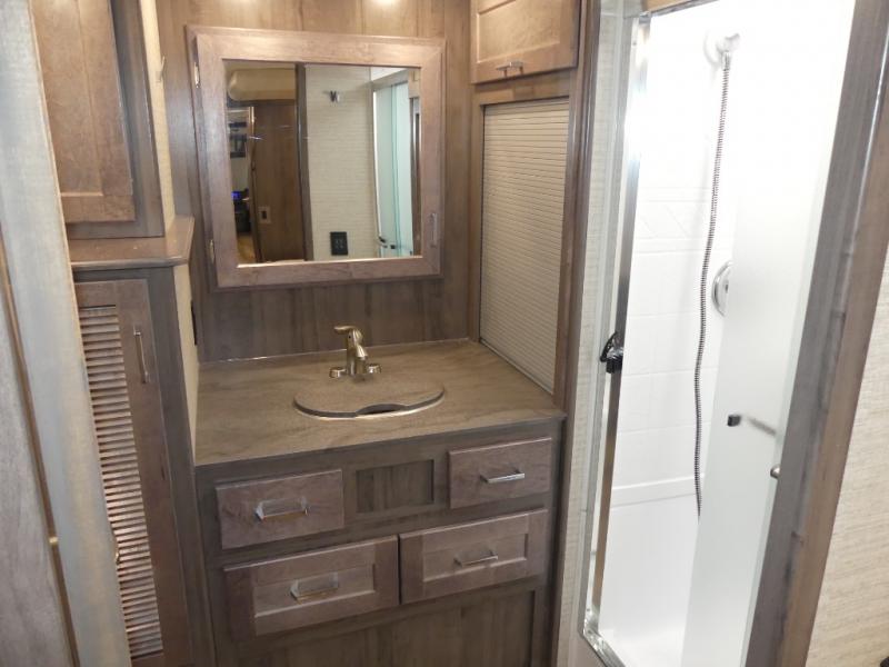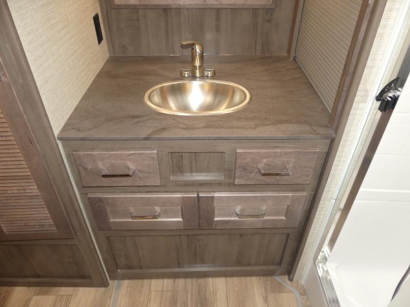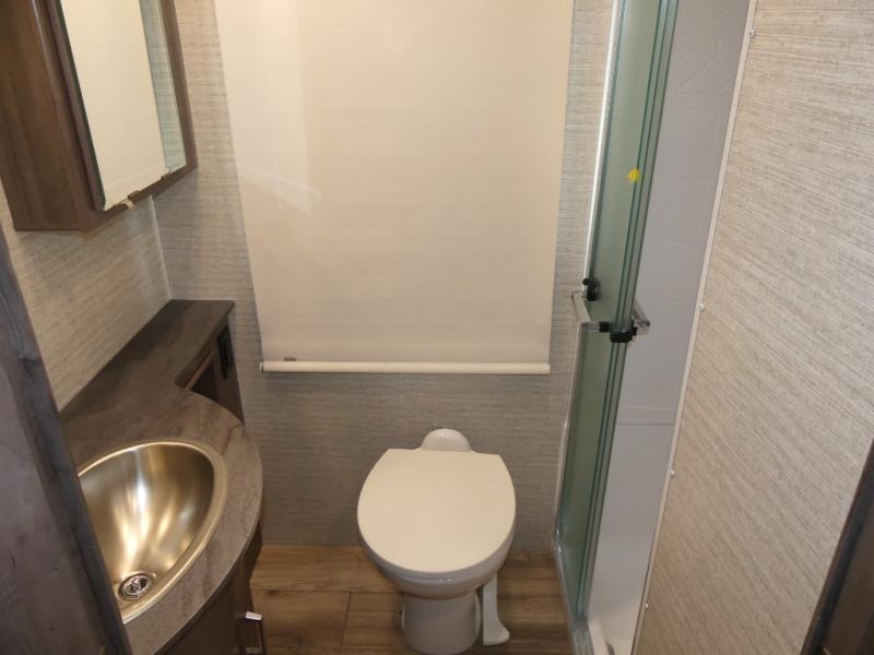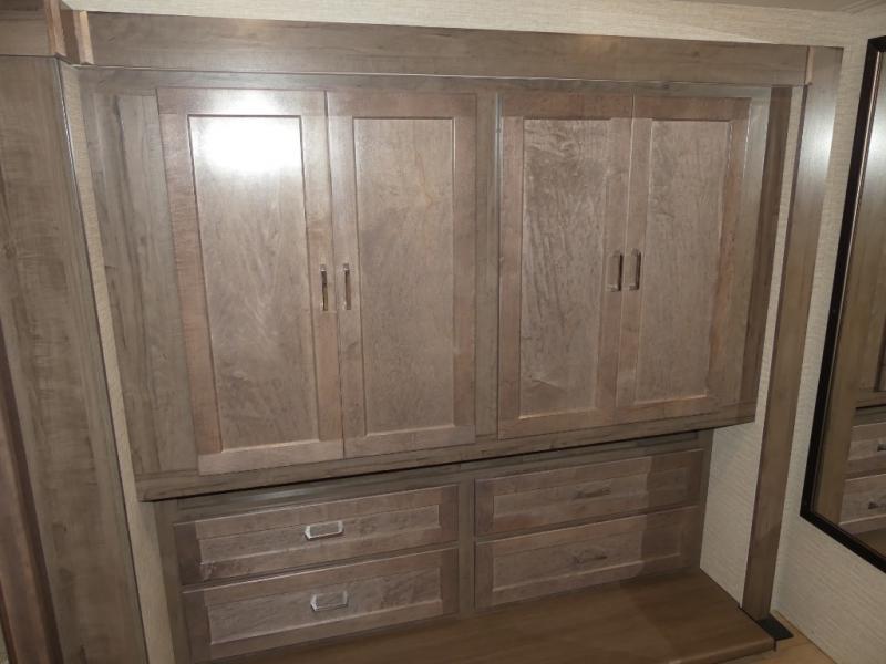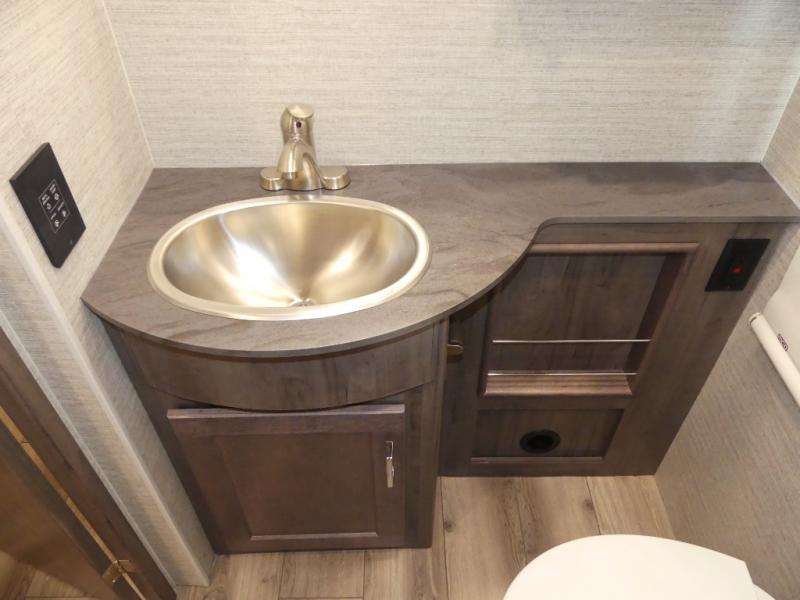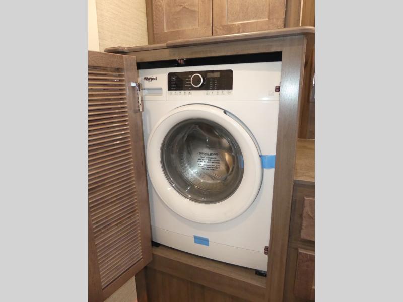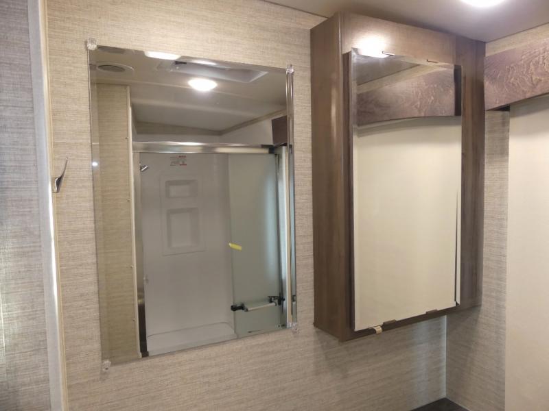You can bet that the bunk beds on this Forza Class A diesel motorhome are going to be a big draw for your kids! And the master suite that has its own full bathroom is certainly going to entice you! Not only is there a full bathroom back in the master suite, but there is also a second full bathroom out in the main living area so that everyone else can have a place to get ready each morning too. The reclining/swivel cab seats are helpful because they add more lounge space to the main living area, and the TrueComfort+ sofa with lap table is right across from the fireplace and 50" HDTV for easy viewing. You will also have a fully equipped kitchen with plenty of tools to make your famous dinners for everyone.