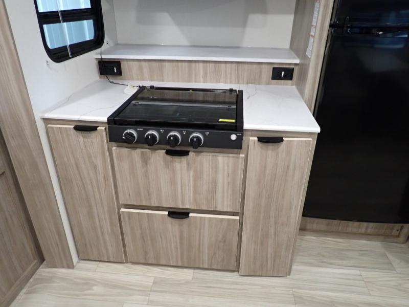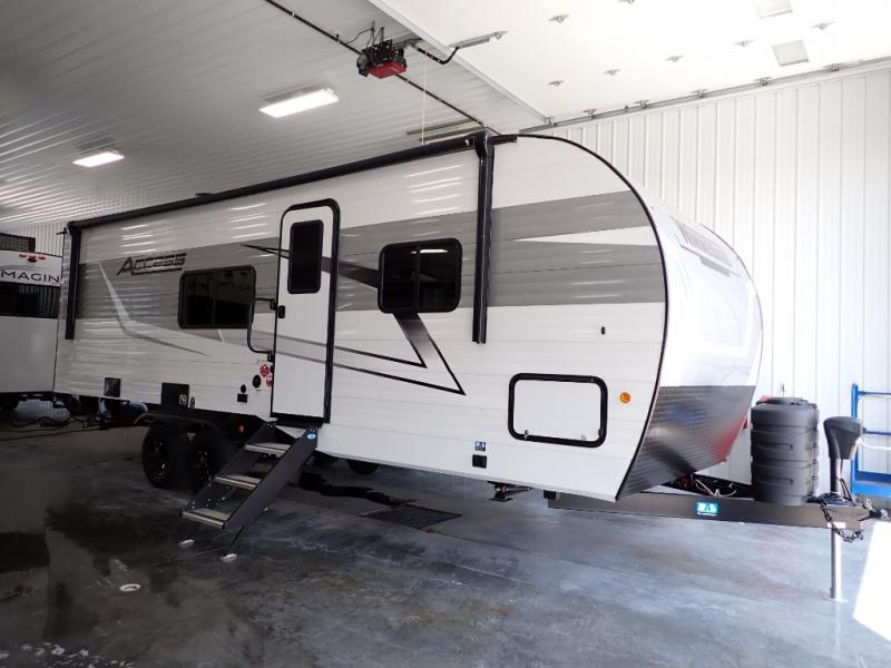 With any Winnebago Access travel trailer you will find thoughtful, clean, and contemporary designs filled with premium features that all have come to expect on any Winnebago towable. The powered stabilizer jacks make setting up camp easy with just the touch of a single button. You will appreciate the stylish exterior front profile and thicker sidewall metal for greater aerodynamics plus strength and durability. With a fully enclosed underbelly you can easily extend your camping season into the colder months, and the 12 volt tank pad heaters will keep you from having frozen pipes. On the inside, a porcelain toilet, larger skylights for more natural lighting, abundant storage, and spacious living areas making every camping trip more enjoyable. And, the 200 watt solar power reduces the need for shore power which makes it easy to go off-grid. Make your choice today and Access your next adventure!
