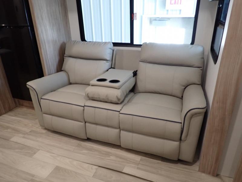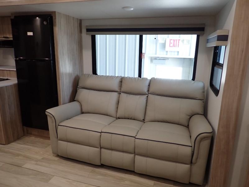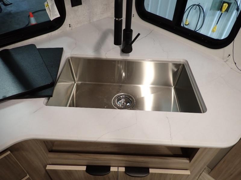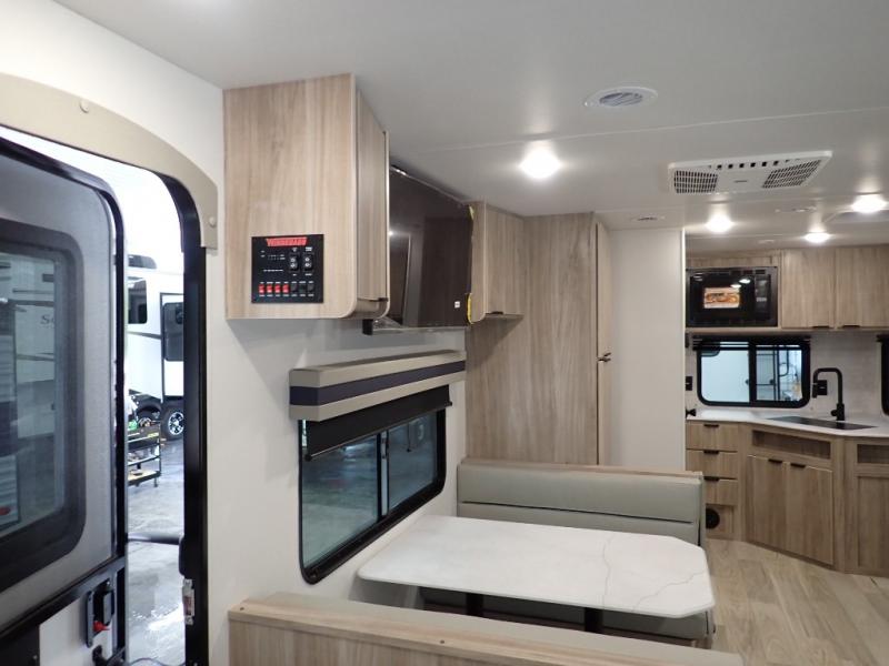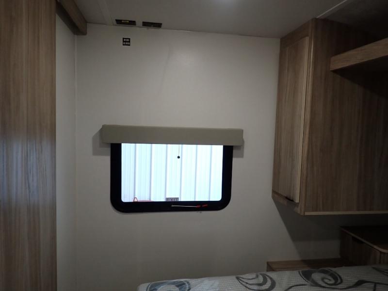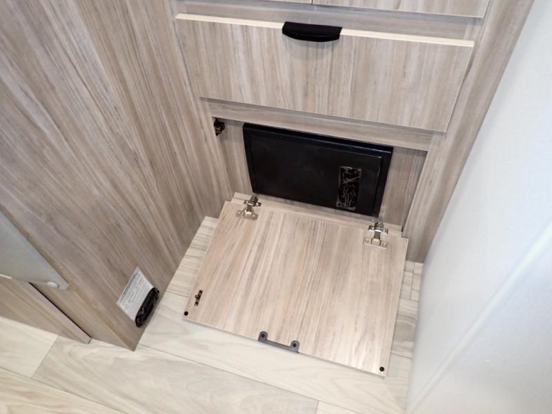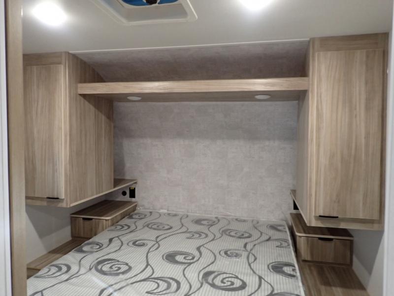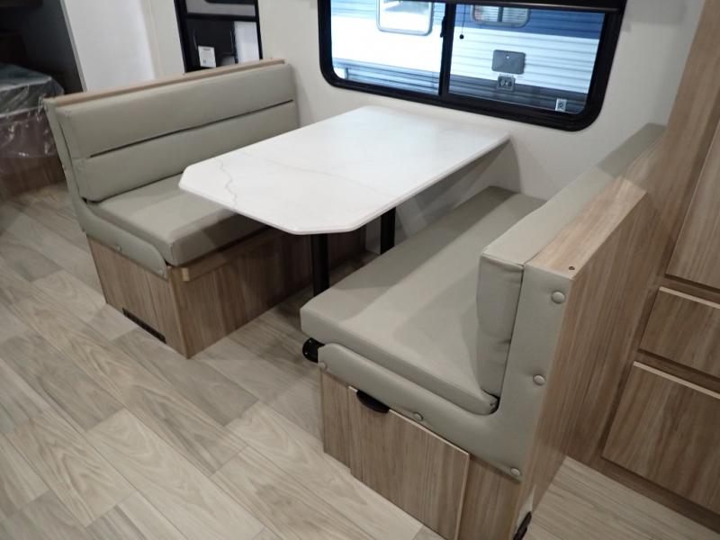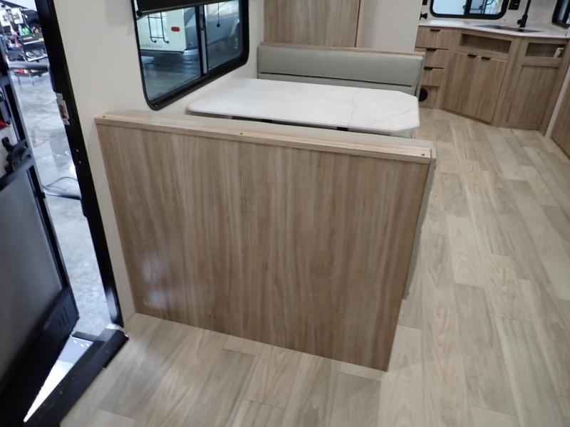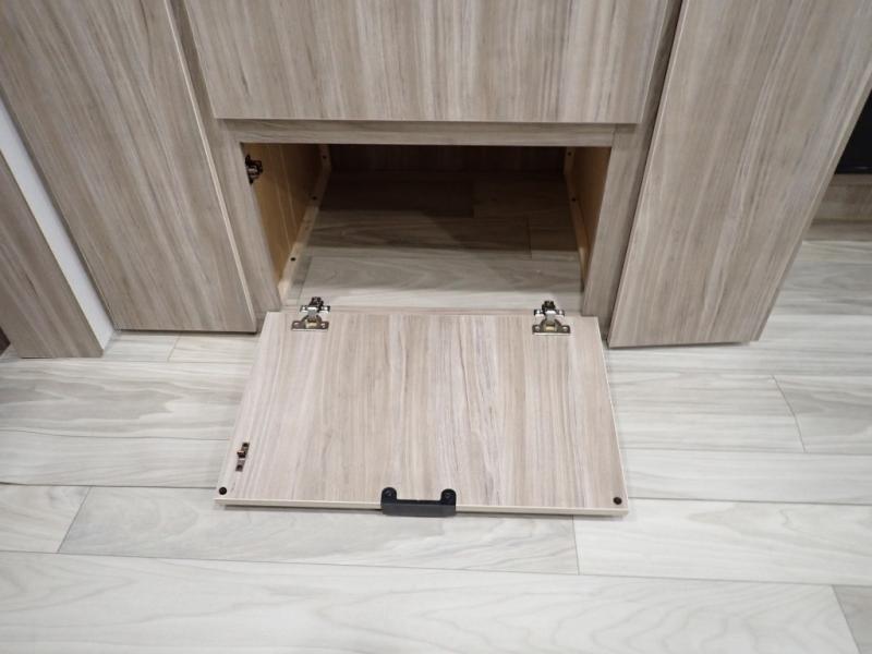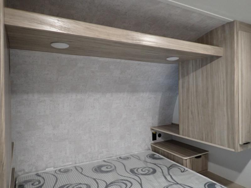 Enjoy your Access in the great outdoors! This unit features a large slide for added walking around space inside. There is sleeping for two to six depending on size and furniture choices starting with the front private bedroom featuring a space saving sliding door. You can also sleep two on the optional tri-fold sofa within the slide, and the dinette opposite can be converted for one or two little ones. You will find ample storage throughout in overhead storage cabinets, under bed storage and wardrobes, plus more. The kitchen appliances are also within the large slide, plus you will find a nice size sink in the rear roadside corner with storage both above and below. A convenient rear corner bathroom allows you to skip the use of the camp facilities and enjoy cleaning up in the privacy of your own unit. Here you will find a 30" x 36" shower, porcelain toilet and a vanity with sink and corner medicine cabinet. You will also appreciate the exterior storage door within the slide and there is also convenient pass-through storage for your larger camp items to be neatly tucked away when not in use.