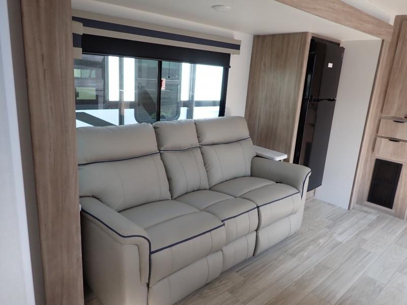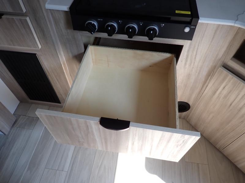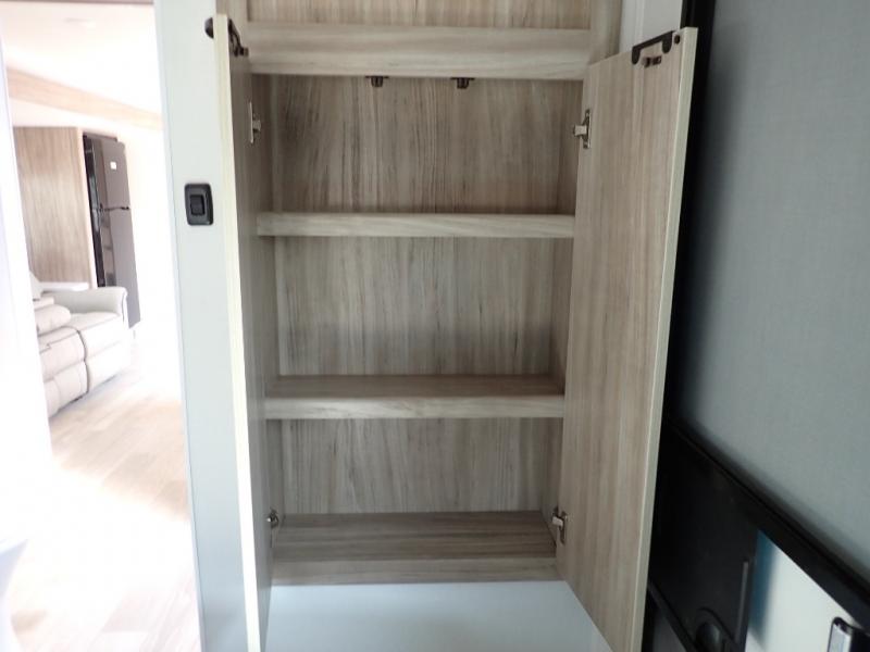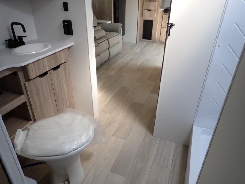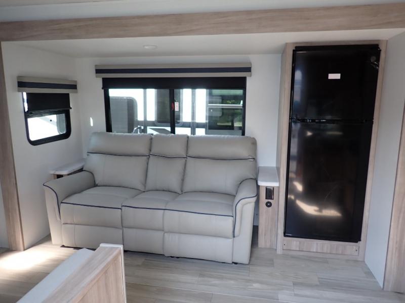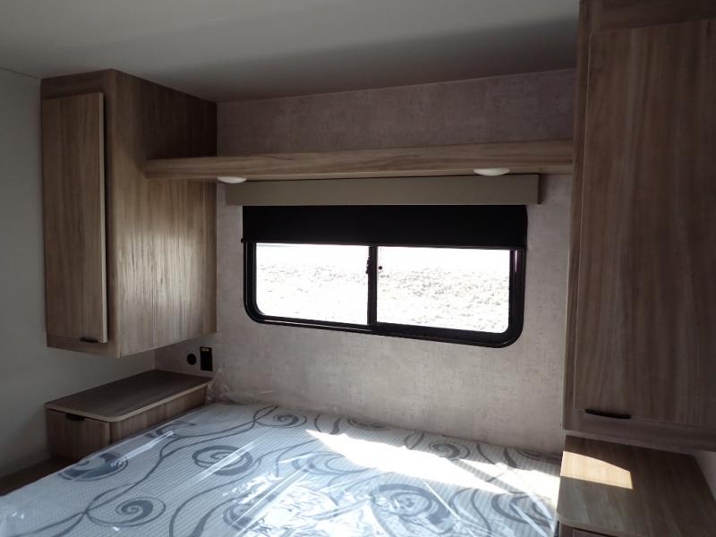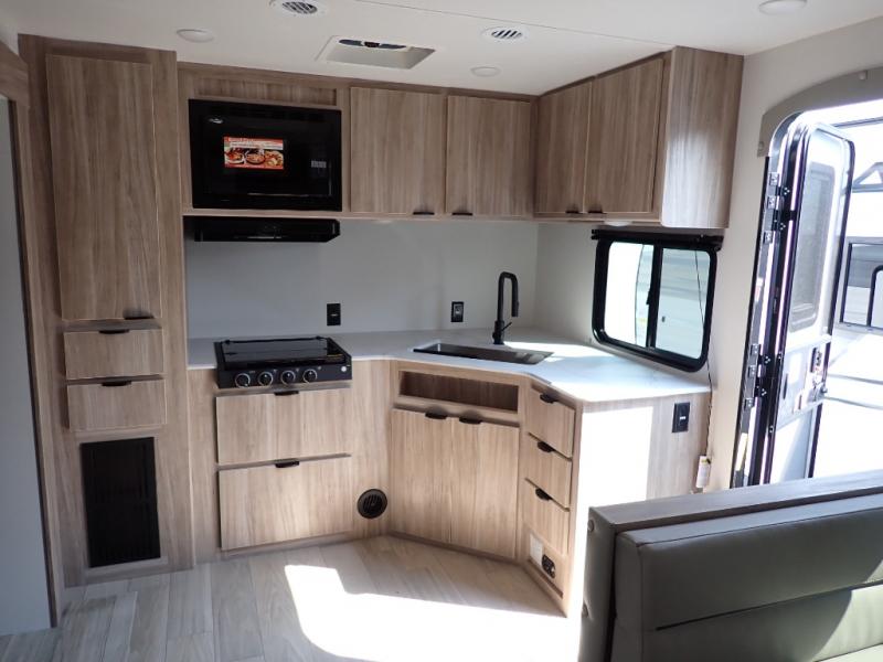 This single slide Access travel trailer features a front kitchen layout, a large roadside slide, and a private bedroom beyond a walk-through full bath. It also features both front and rear pass-through storage, as well as dual entry doors! You will find the main combined living area and kitchen open and spacious thanks to the slide. Cook your family their favorite meals with the appliances inside, dine at the 72" x 41" dinette where you can add an optional TV above to enjoy from the theater seating opposite. A convenient walk-through bath is spacious enough for two to get ready at once since it is the full width of the trailer. Next, head through space saving sliding doors to the rear private bedroom with its own access to the outside through the second entry. Here a queen bed awaits for a great nights rest. This bedroom offers plenty of storage in bedside wardrobes, a closet just off the foot of the bed, in under bed storage for extra blankets and larger items, plus so much more!