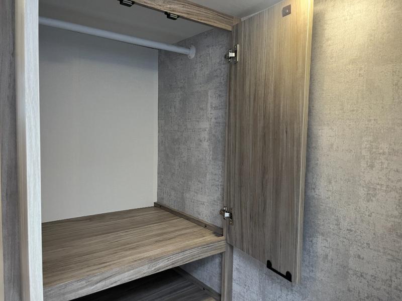 This M-Series model features a full rear bathroom with all the amenities needed to take good care of yourself while exploring new horizons. If you are a foodie lover this travel trailer will be the perfect choice for you, due to its fantastic kitchen which boasts a pantry, 10 cu. refrigerator, a two-burner cooktop, and a 44” x 72” dinette, ideal for having your favorite meals each day plus, this unit also has an exterior refrigerator with a pull-out griddle perfect for cooking while connecting with nature. Finally, you can have the nicest rest in the tranquil front bed ideal for two, along with a dual wardrobe and nightstands on each side of the bed, making it a complete place with all the needed amenities to recharge energy.