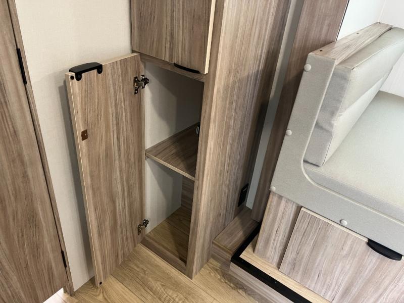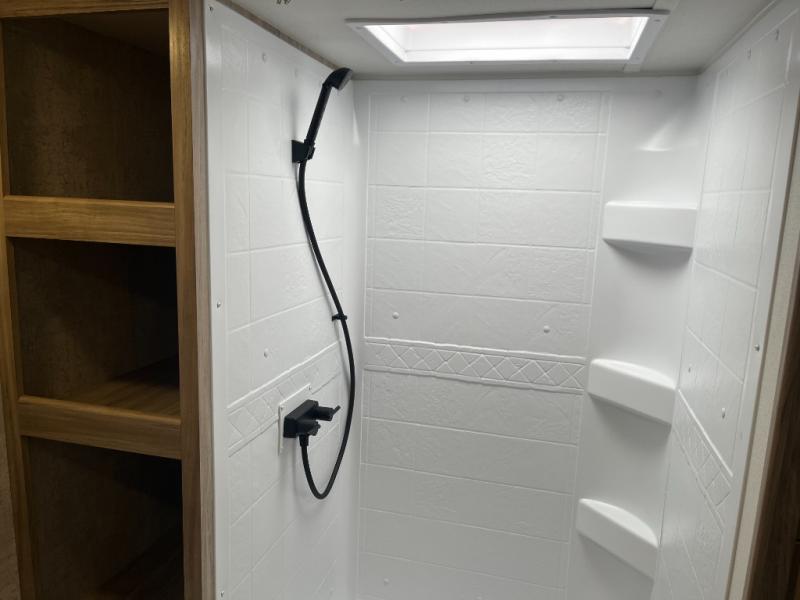 Each M-Series travel trailer features a fully enclosed underbelly, a one piece TPO fully walkable roof, NXG engineered frame with triple solid entry step for ease in entering as well as manual stabilizer jacks that make your time in camp enjoyable. These units feature ample storage both inside and out, plus versatile sleeping arrangements and complete kitchen and baths plus full overlay European style cabinetry, sealed countertops, blackout roller shades for privacy, and a large 14" x 22" skylight over each shower. This perfect blend of practicality and style offers you a functional and comfortable, budget friendly way to camp in an easy to tow trailer. Come choose yours today!