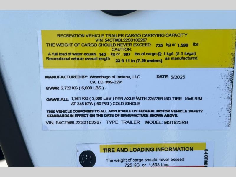 New 2025 Winnebago M-Series 1923RB Travel Trailer