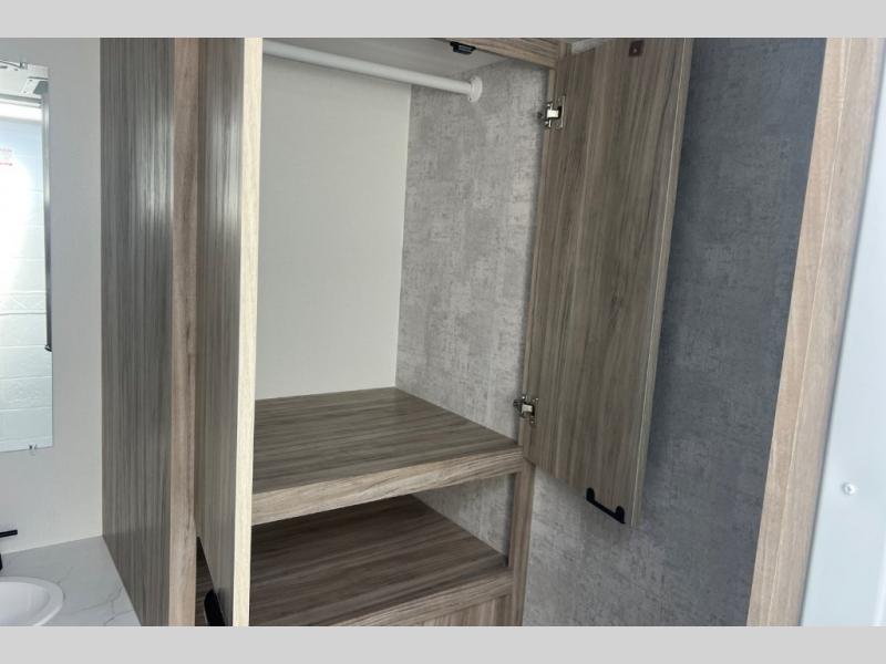 This M-Series model features a full rear bathroom with all the amenities needed to take good care of yourself while exploring new horizons. If you are a foodie lover this travel trailer will be the perfect choice for you, due to its fantastic kitchen which boasts a pantry, 10 cu. refrigerator, a two-burner cooktop, and a 44” x 72” dinette, ideal for having your favorite meals each day plus, this unit also has an exterior refrigerator with a pull-out griddle perfect for cooking while connecting with nature. Finally, you can have the nicest rest in the tranquil front bed ideal for two, along with a dual wardrobe and nightstands on each side of the bed, making it a complete place with all the needed amenities to recharge energy.