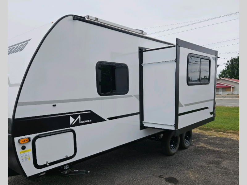 Each M-Series travel trailer features a fully enclosed underbelly, a one piece TPO fully walkable roof, NXG engineered frame with triple solid entry step for ease in entering as well as manual stabilizer jacks that make your time in camp enjoyable. These units feature ample storage both inside and out, plus versatile sleeping arrangements and complete kitchen and baths plus full overlay European style cabinetry, sealed countertops, blackout roller shades for privacy, and a large 14" x 22" skylight over each shower. This perfect blend of practicality and style offers you a functional and comfortable, budget friendly way to camp in an easy to tow trailer. Come choose yours today!