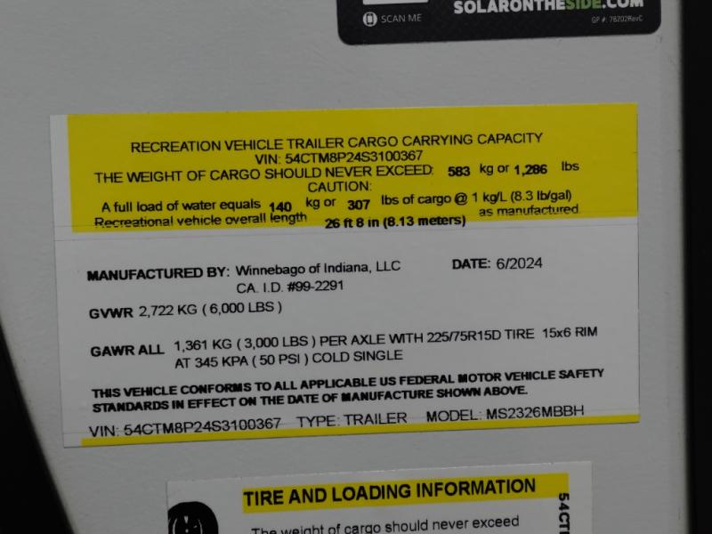 New 2025 Winnebago M-Series 2326MBBH Travel Trailer