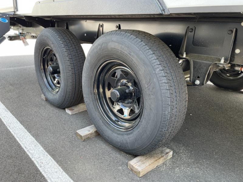 If you are looking for a rear kitchen layout, then this M-Series trailer might be perfect for you! Enter and find the kitchen right there making loading groceries a cinch with the 10 cu. ft. RV refrigerator just inside the door. There are dual windows near the corner sink which is great when washing dishes allowing you a nice view of your surroundings. A 64" jack-knife sofa slide creates more space on the interior for moving around, and also functions as additional sleeping. Opposite the sofa, you will find a 32" x 76" booth dinette. Here is where you will find overhead cabinets and an optional TV if you choose to add. A walk-through bath offers plenty of space to get cleaned up and ready for another day since it stretches across the entire width of the trailer. Each morning or night you will enjoy the convenience of a 30" x 36" shower on one side, and a toilet and corner vanity with sink opposite. The vanity counter also stretches along the curbside wall for added space for your things. A sliding space saving door leads into the front private bedroom featuring a queen bed with dual bedside wardrobes for your clothing. There is a large overhead cabinet as well. On the outside, a pass-through compartment offers easy access for all of your outdoor gear and more!