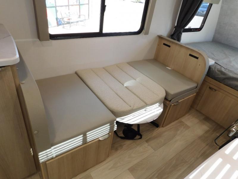 A spacious and functional dining area that easily converts into extra sleeping space, perfect for meals, games, or working on the go.