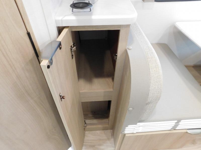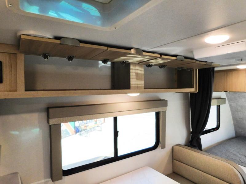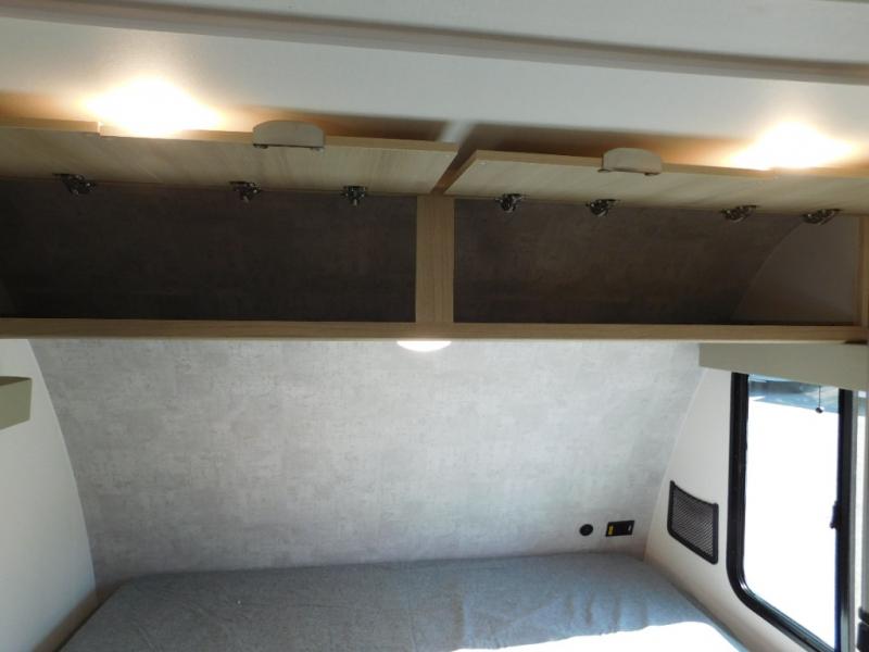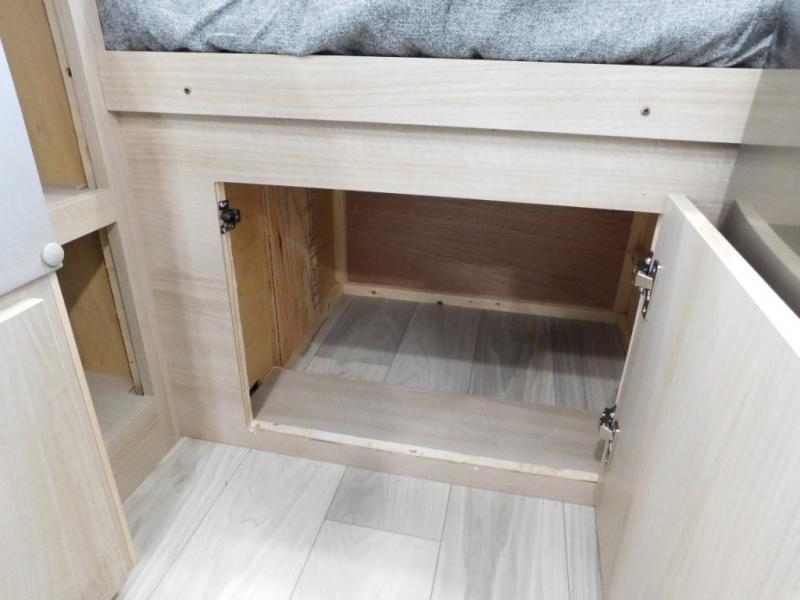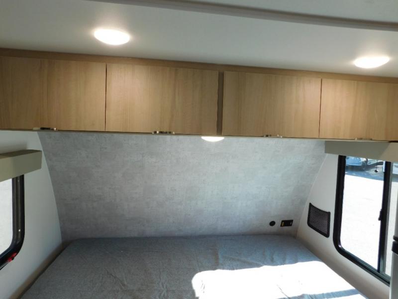 Front full-size bed (54" x 74") provides a cozy retreat after a day of exploration, with easy access and smart storage nearby.
