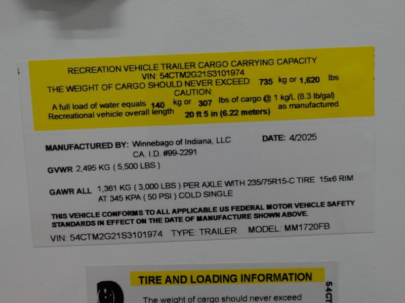 New 2025 Winnebago Micro Minnie 1720FB Travel Trailer