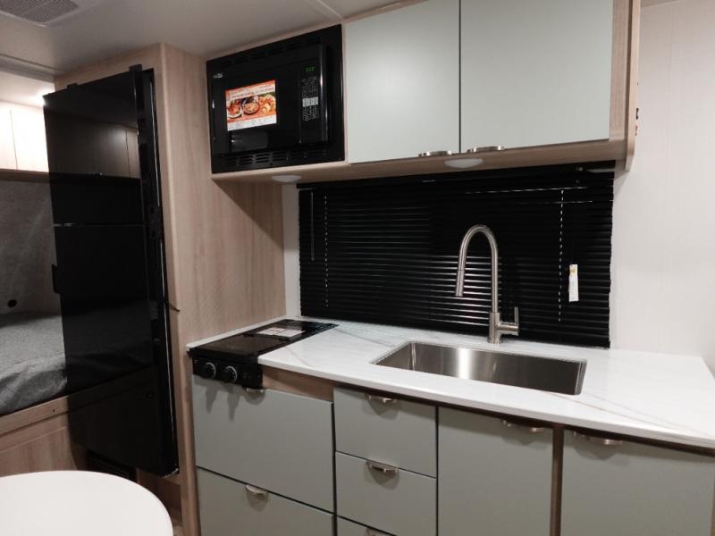 Start out on your boundless journey in one of these Winnebago Micro Minnie travel trailers! Towing is made simple with the 7' width to keep your Micro Minnie in your rear-view mirror. They don't lack in features either although they are compact in size. The spacious galley including a sink, refrigerator, a cooktop, and even a convection microwave oven allows you to cook without compromise. You will not only enjoy the entertainment found indoors with a Smart TV, a JBL premium sound system and Aura Cube high performance mechless media center, but outdoors you will also enjoy the JBL premium speakers and a power awning with LED lighting. Each model also comes with flexible exterior storage to make packing quick and easy, a 200-watt solar panel for off-grid camping, and Dexter TORFLEX torsion stub axles for smooth towing!