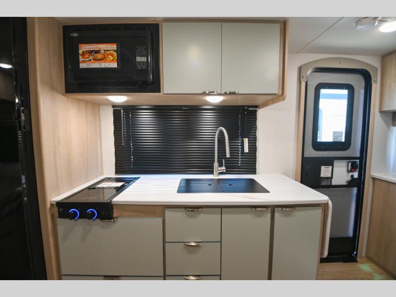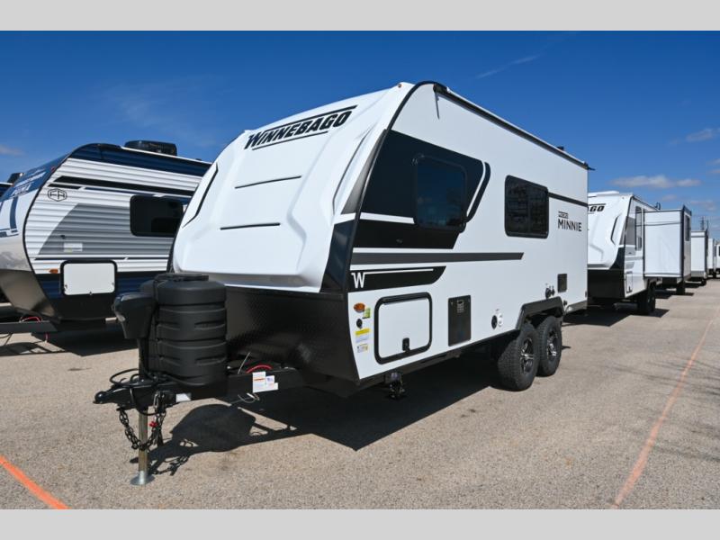 Start out on your boundless journey in one of these Winnebago Micro Minnie travel trailers! Towing is made simple with the 7' width to keep your Micro Minnie in your rear-view mirror. They don't lack in features either although they are compact in size. The spacious galley including a sink, refrigerator, a cooktop, and even a convection microwave oven allows you to cook without compromise. You will not only enjoy the entertainment found indoors with a Smart TV, a JBL premium sound system and Aura Cube high performance mechless media center, but outdoors you will also enjoy the JBL premium speakers and a power awning with LED lighting. Each model also comes with flexible exterior storage to make packing quick and easy, a 200-watt solar panel for off-grid camping, and Dexter TORFLEX torsion stub axles for smooth towing!