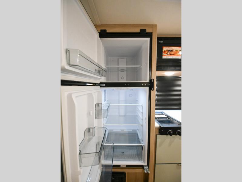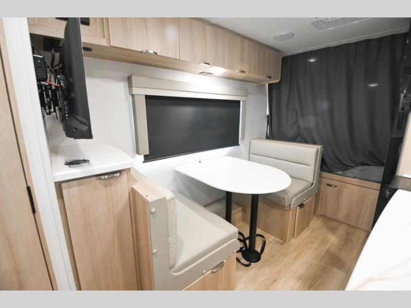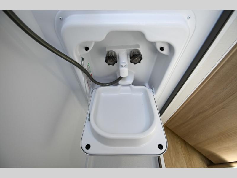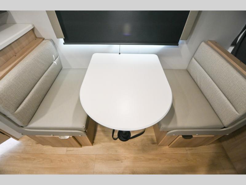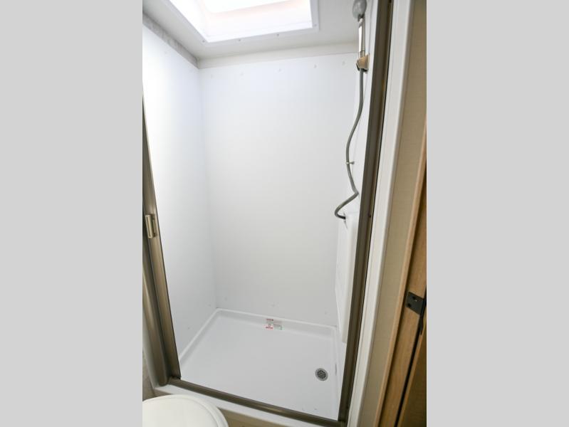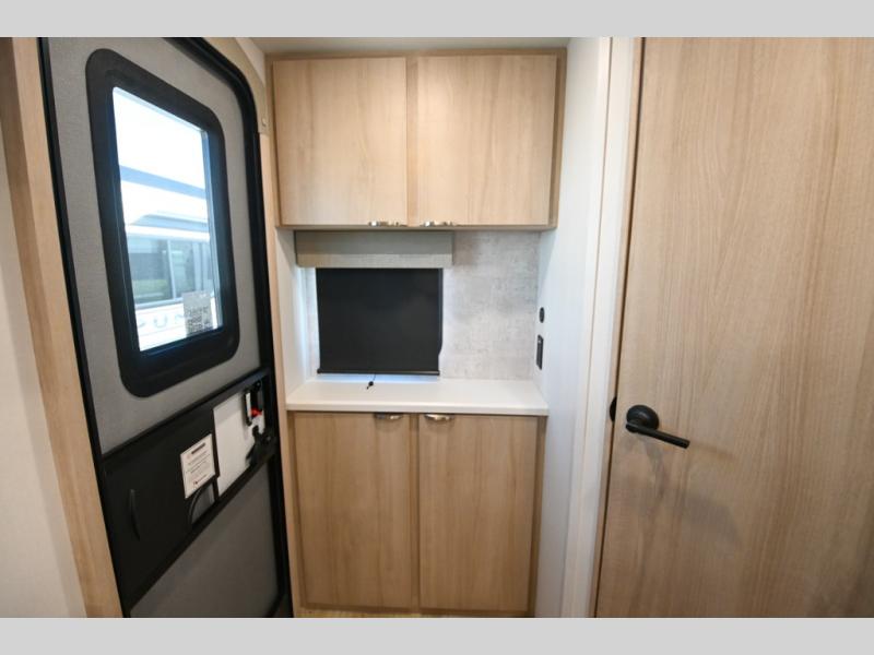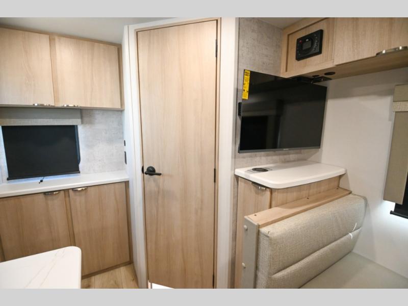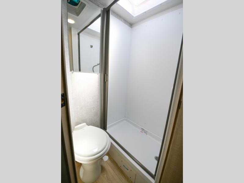 You will love this efficient floorplan that has everything you need! The front 54" x 74" full-size bed provides a great place to sleep after a long day of adventure. The galley kitchen is well-equipped for meals and includes a flip-up counter extension that will expand your work space or can be stowed away for more room. A pantry cabinet provides additional storage space. After cooking, you can enjoy dining at the spacious 74" x 32" booth dinette. A rear corner bath with angled entry door fits in a roomy 24" x 36" shower plus a fold down sink.
