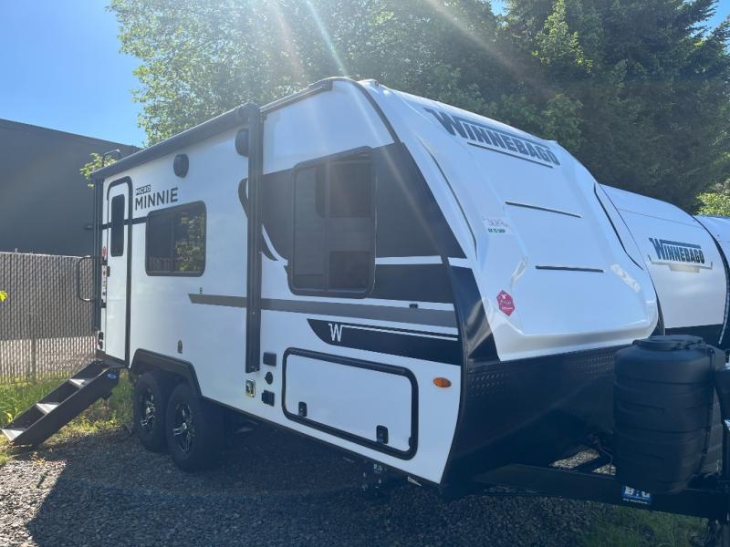 Start out on your boundless journey in one of these Winnebago Micro Minnie travel trailers! Towing is made simple with the 7' width to keep your Micro Minnie in your rear-view mirror. They don't lack in features either although they are compact in size. The spacious galley including a sink, refrigerator, a cooktop, and even a convection microwave oven allows you to cook without compromise. You will not only enjoy the entertainment found indoors with a Smart TV, a JBL premium sound system and Aura Cube high performance mechless media center, but outdoors you will also enjoy the JBL premium speakers and a power awning with LED lighting. Each model also comes with flexible exterior storage to make packing quick and easy, a 200-watt solar panel for off-grid camping, and Dexter TORFLEX torsion stub axles for smooth towing!