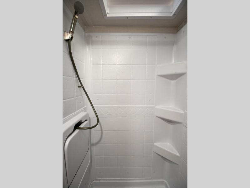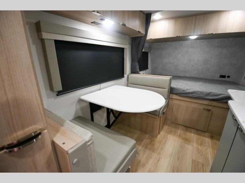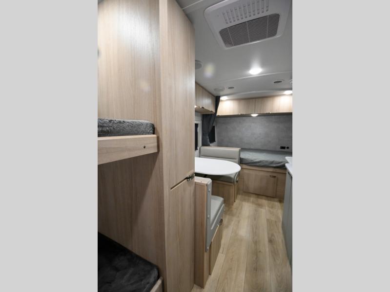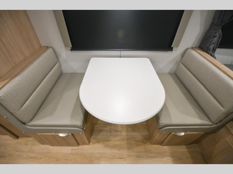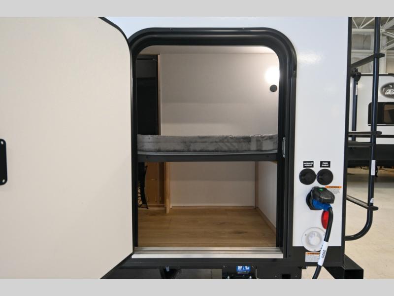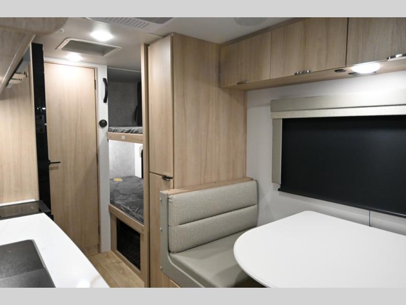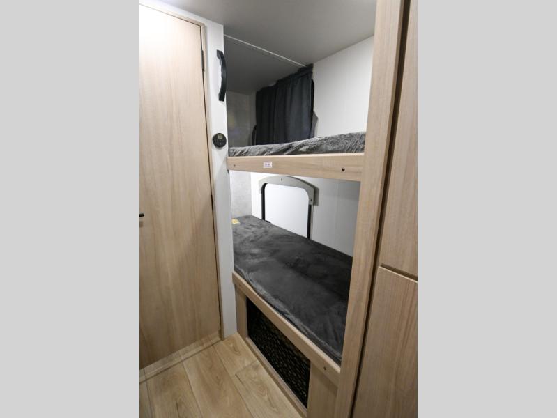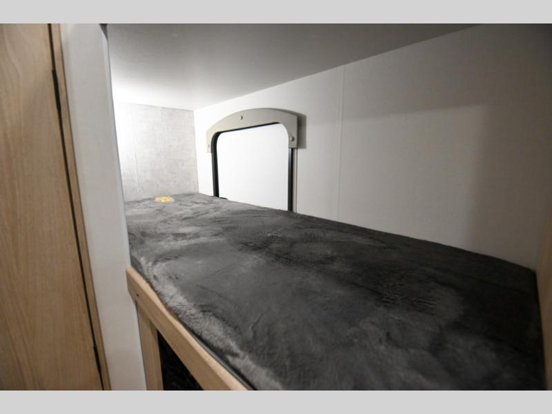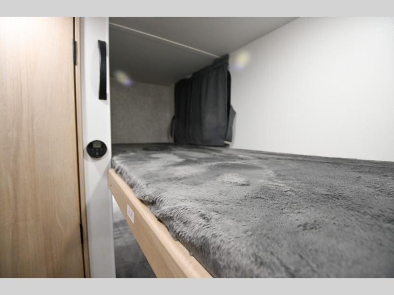 Pack your bags and load up the kids to head out on a great camping adventure as a family! There is a front 54" x 74" full-size bed for you and a set of rear corner bunk beds for the kids, plus they can bring a friend to sleep on the 32" x 74" booth dinette. You can prepare meals for the whole group with the three burner cooktop and the 10.3 cu. ft. 12V refrigerator, plus you can pop a bag of popcorn in the microwave for movie night with the Smart TV. And a private toilet and 24" x 36" shower next to the bunks and offers a great place to get ready for the day or bedtime.
