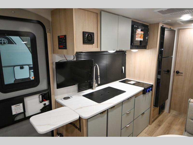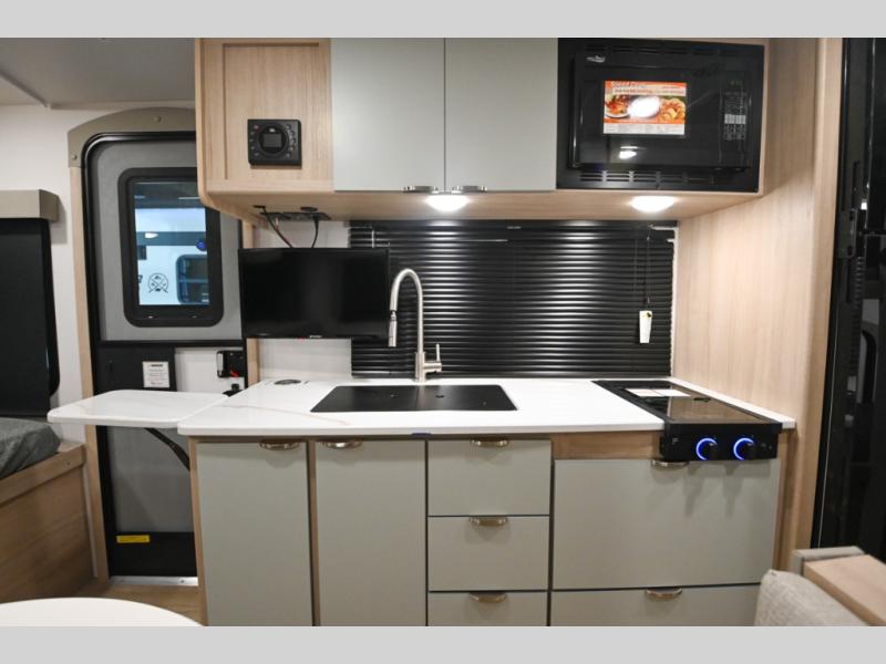 Start out on your boundless journey in one of these Winnebago Micro Minnie travel trailers! Towing is made simple with the 7' width to keep your Micro Minnie in your rear-view mirror. They don't lack in features either although they are compact in size. The spacious galley including a sink, refrigerator, a cooktop, and even a convection microwave oven allows you to cook without compromise. You will not only enjoy the entertainment found indoors with a Smart TV, a JBL premium sound system and Aura Cube high performance mechless media center, but outdoors you will also enjoy the JBL premium speakers and a power awning with LED lighting. Each model also comes with flexible exterior storage to make packing quick and easy, a 200-watt solar panel for off-grid camping, and Dexter TORFLEX torsion stub axles for smooth towing!