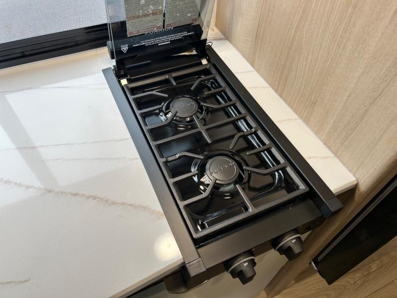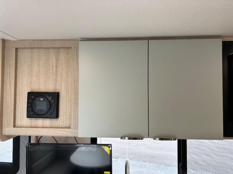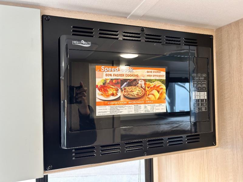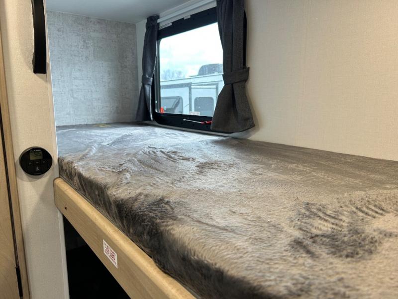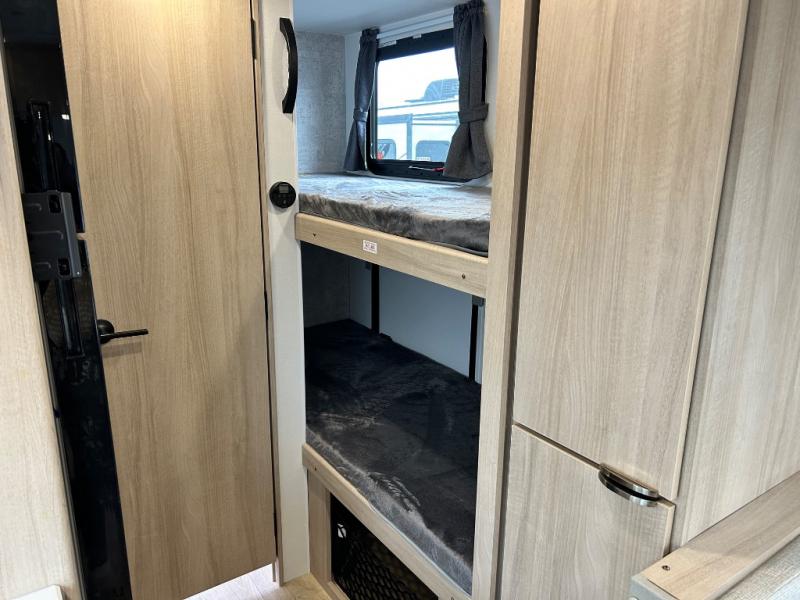 Pack your bags and load up the kids to head out on a great camping adventure as a family! There is a front 54" x 74" full-size bed for you and a set of rear corner bunk beds for the kids, plus they can bring a friend to sleep on the 32" x 74" booth dinette. You can prepare meals for the whole group with the three burner cooktop and the 10.3 cu. ft. 12V refrigerator, plus you can pop a bag of popcorn in the microwave for movie night with the Smart TV. And a private toilet and 24" x 36" shower next to the bunks and offers a great place to get ready for the day or bedtime.
