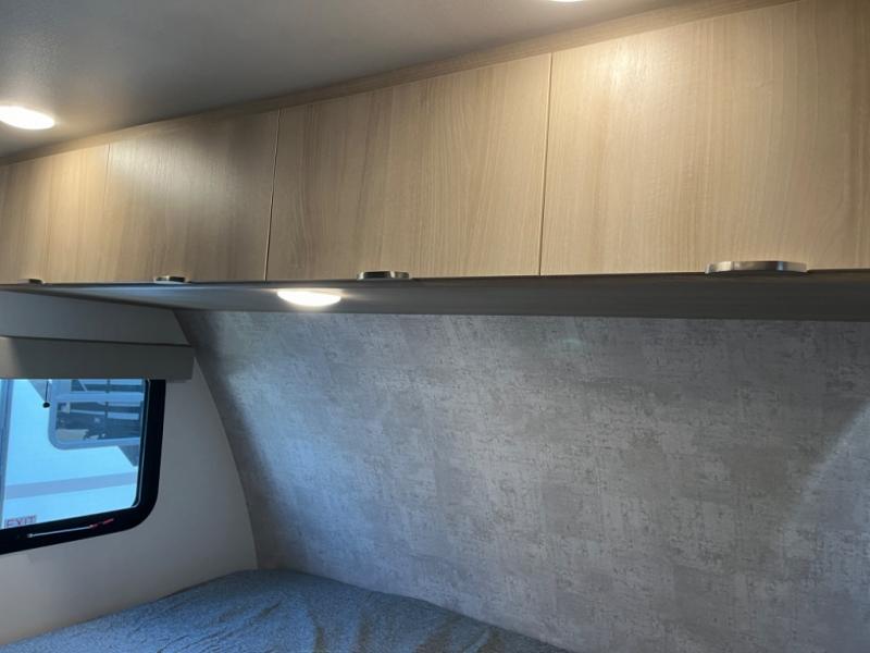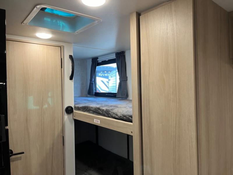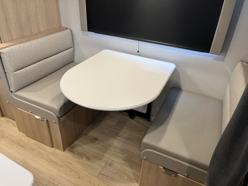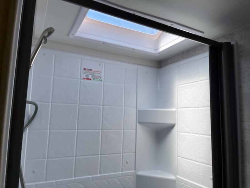 Pack your bags and load up the kids to head out on a great camping adventure as a family! There is a front 54" x 74" full-size bed for you and a set of rear corner bunk beds for the kids, plus they can bring a friend to sleep on the 32" x 74" booth dinette. You can prepare meals for the whole group with the three burner cooktop and the 10.3 cu. ft. 12V refrigerator, plus you can pop a bag of popcorn in the microwave for movie night with the Smart TV. And a private toilet and 24" x 36" shower next to the bunks and offers a great place to get ready for the day or bedtime.