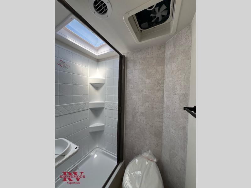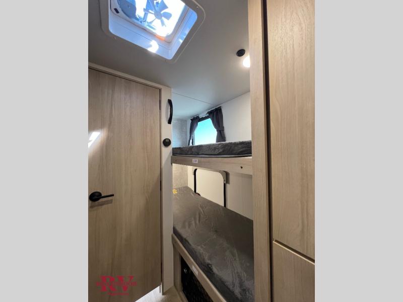 Pack your bags and load up the kids to head out on a great camping adventure as a family! There is a front 54" x 74" full-size bed for you and a set of rear corner bunk beds for the kids, plus they can bring a friend to sleep on the 32" x 74" booth dinette. You can prepare meals for the whole group with the three burner cooktop and the 10.3 cu. ft. 12V refrigerator, plus you can pop a bag of popcorn in the microwave for movie night with the Smart TV. And a private toilet and 24" x 36" shower next to the bunks and offers a great place to get ready for the day or bedtime.