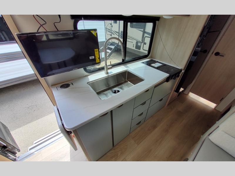 Start out on your boundless journey in one of these Winnebago Micro Minnie travel trailers! Towing is made simple with the 7' width to keep your Micro Minnie in your rear-view mirror. They don't lack in features either although they are compact in size. The spacious galley including a sink, refrigerator, a cooktop, and even a convection microwave oven allows you to cook without compromise. You will not only enjoy the entertainment found indoors with a Smart TV, a JBL premium sound system and Aura Cube high performance mechless media center, but outdoors you will also enjoy the JBL premium speakers and a power awning with LED lighting. Each model also comes with flexible exterior storage to make packing quick and easy, a 200-watt solar panel for off-grid camping, and Dexter TORFLEX torsion stub axles for smooth towing!
