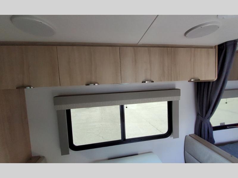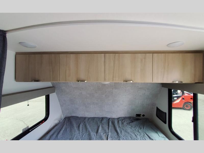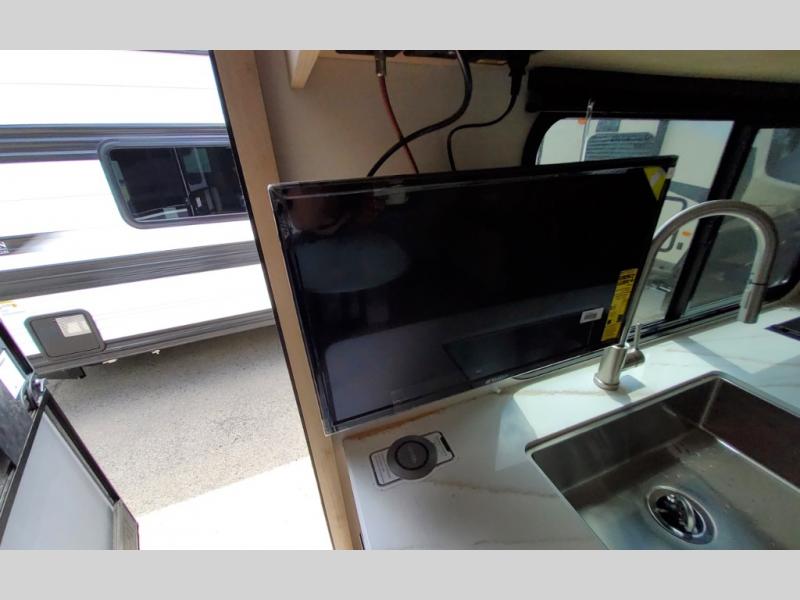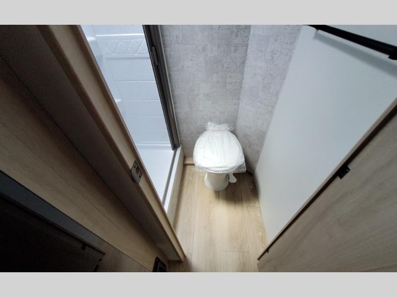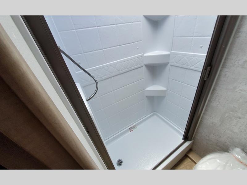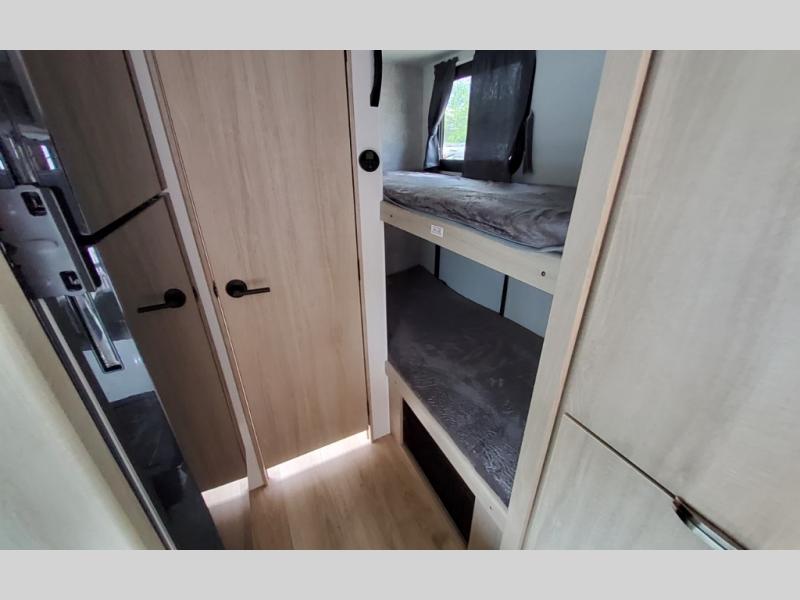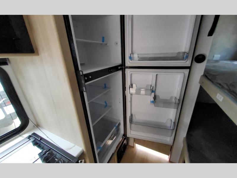 Pack your bags and load up the kids to head out on a great camping adventure as a family! There is a front 54" x 74" full-size bed for you and a set of rear corner bunk beds for the kids, plus they can bring a friend to sleep on the 32" x 74" booth dinette. You can prepare meals for the whole group with the three burner cooktop and the 10.3 cu. ft. 12V refrigerator, plus you can pop a bag of popcorn in the microwave for movie night with the Smart TV. And a private toilet and 24" x 36" shower next to the bunks and offers a great place to get ready for the day or bedtime.