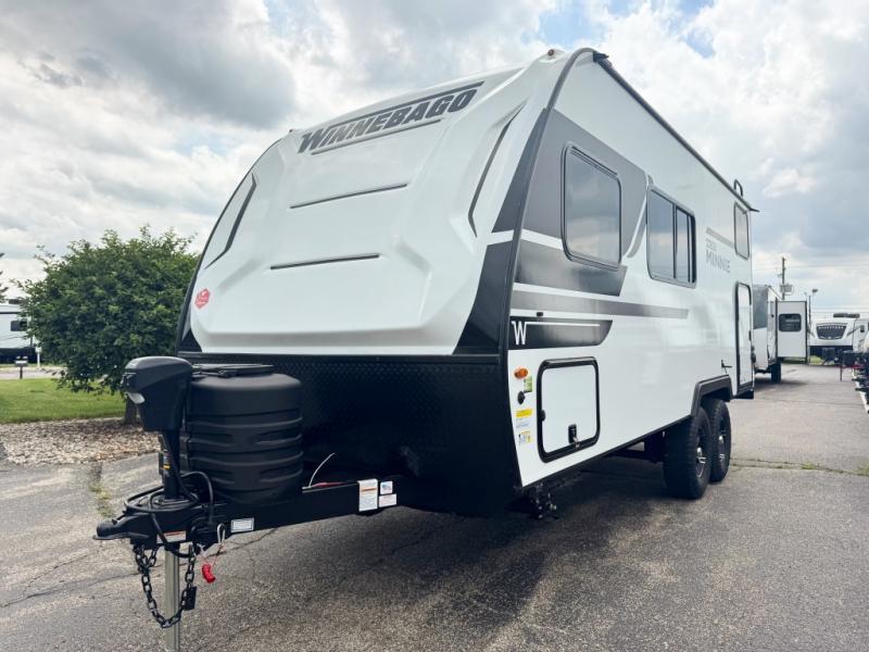 Start out on your boundless journey in one of these Winnebago Micro Minnie travel trailers! Towing is made simple with the 7' width to keep your Micro Minnie in your rear-view mirror. They don't lack in features either although they are compact in size. The spacious galley including a sink, refrigerator, a cooktop, and even a convection microwave oven allows you to cook without compromise. You will not only enjoy the entertainment found indoors with a Smart TV, a JBL premium sound system and Aura Cube high performance mechless media center, but outdoors you will also enjoy the JBL premium speakers and a power awning with LED lighting. Each model also comes with flexible exterior storage to make packing quick and easy, a 200-watt solar panel for off-grid camping, and Dexter TORFLEX torsion stub axles for smooth towing!