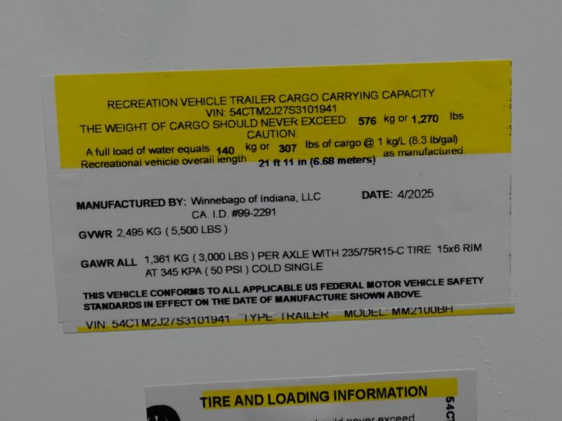 New 2025 Winnebago Micro Minnie 2100BH Travel Trailer