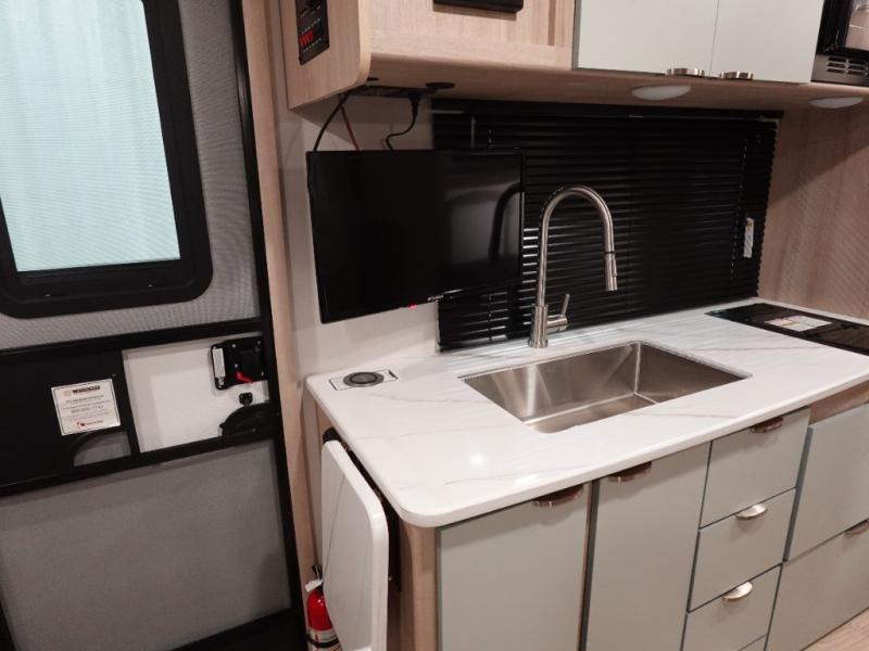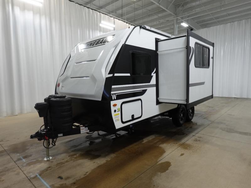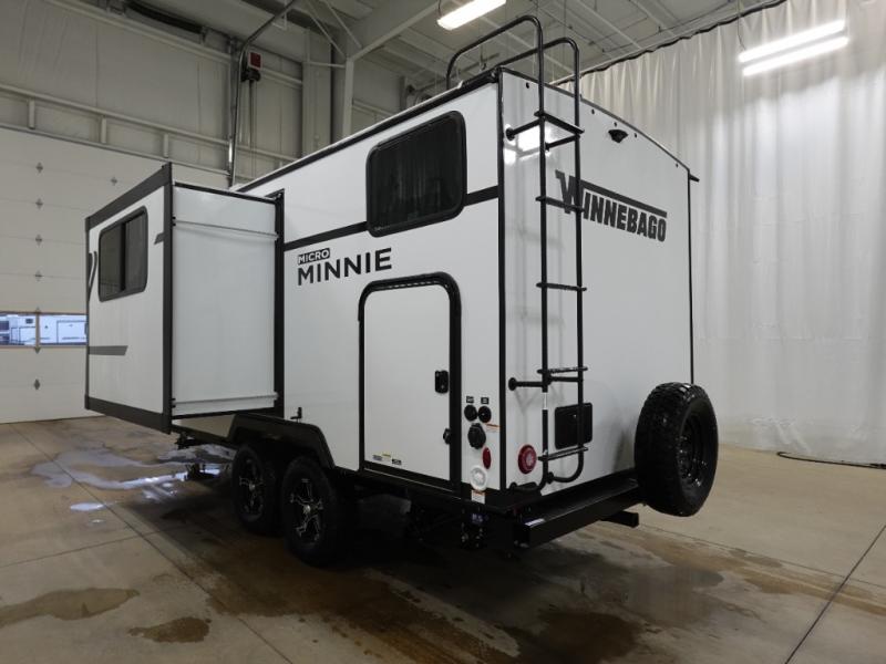 Start out on your boundless journey in one of these Winnebago Micro Minnie travel trailers! Towing is made simple with the 7' width to keep your Micro Minnie in your rear-view mirror. They don't lack in features either although they are compact in size. The spacious galley including a sink, refrigerator, a cooktop, and even a convection microwave oven allows you to cook without compromise. You will not only enjoy the entertainment found indoors with a Smart TV, a JBL premium sound system and Aura Cube high performance mechless media center, but outdoors you will also enjoy the JBL premium speakers and a power awning with LED lighting. Each model also comes with flexible exterior storage to make packing quick and easy, a 200-watt solar panel for off-grid camping, and Dexter TORFLEX torsion stub axles for smooth towing!